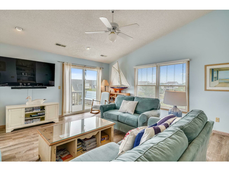 This beautiful beach home is located in the heart of Duck Village and only steps away from dining and shopping. Just a short walk (1175 feet) to the beach with direct and private access. Nicely decorated and well equipped, this pet-friendly vacation home makes you feel welcome inside and out! Gather the family in the top floor living area where they can relax on comfortable furnishings and stream your favorite shows and sports on the 65-inch flatscreen TV with built-in Roku. Each bedroom also features its own flatscreen TV with built-in Roku so everyone can watch what they like in their own space. There is also a stereo with Bluetooth streaming capabilities and various books, videos, movies, games, and puzzles to keep the whole family entertained throughout their stay.