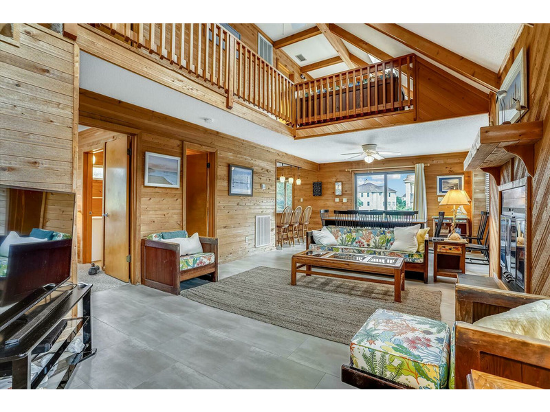 Step into Timberland, a cozy coastal retreat! The natural light invites you to unwind, while the expansive ceilings and skylights offer a touch of grandeur. Lounge on the plush seating as you enjoy a movie night, or let your gaze wander to the framed coastal views that add a dash of serenity. With its elegant wooden staircase leading to a tranquil loft space and subtle beach-themed decor, Timberland is the perfect haven for those seeking a unique and memorable vacation experience.