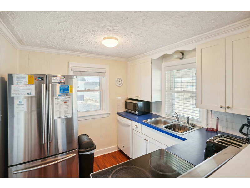 This home features 6 bedrooms with 2 Full Baths (shower stalls only) and 1 Half Bath (toilet only off the laundry area on the ground level). Kitchen with dishwasher and microwave, plus a washer and dryer downstairs to take care of the sandy towels and bathing suits.