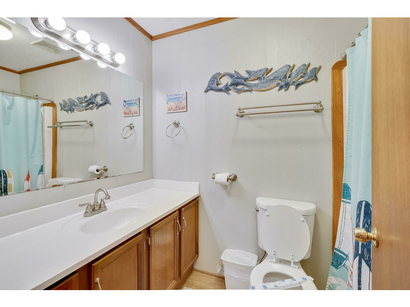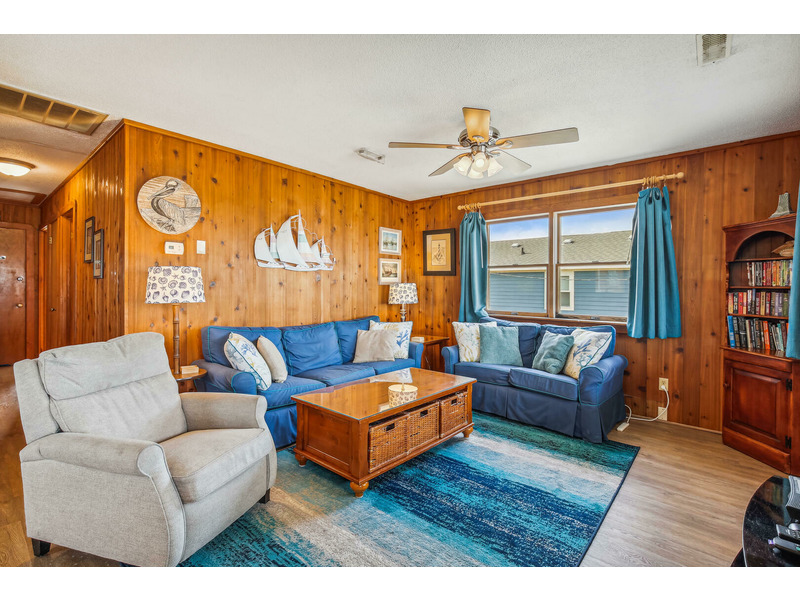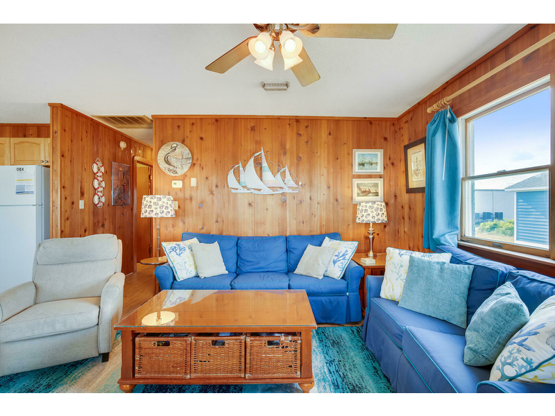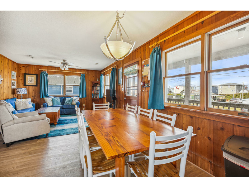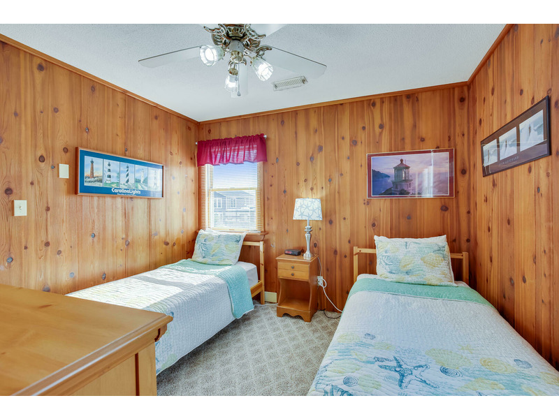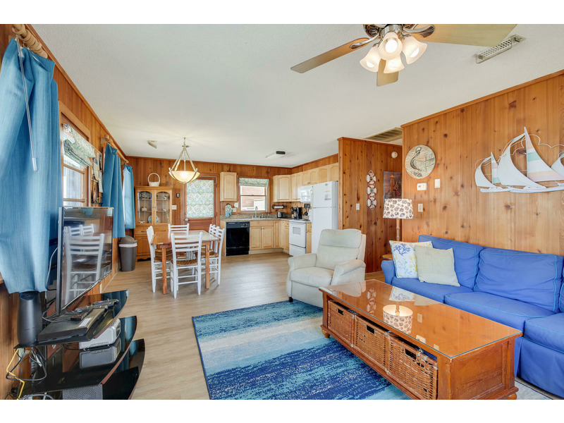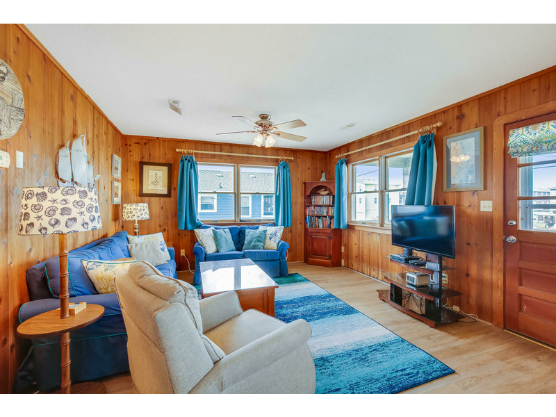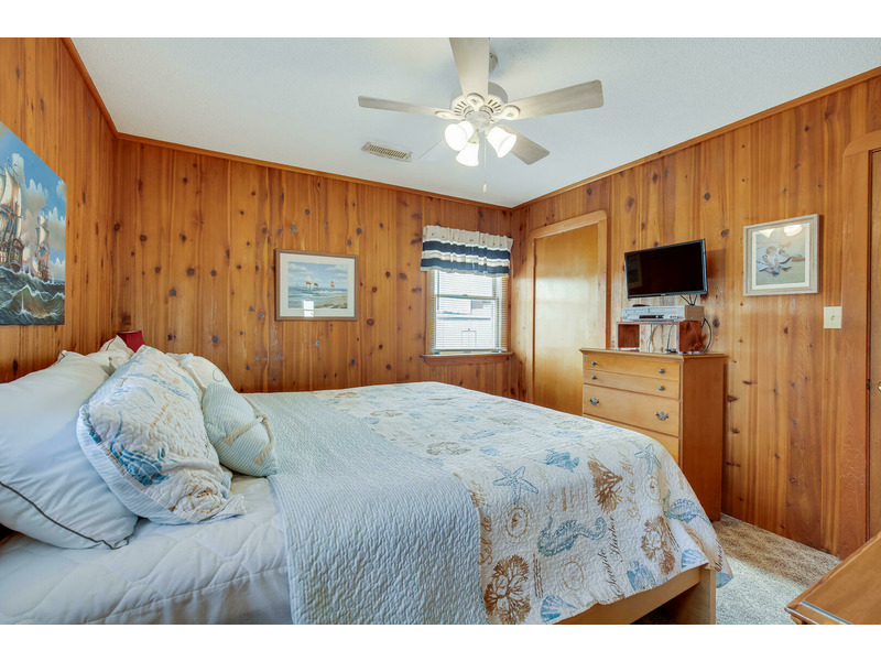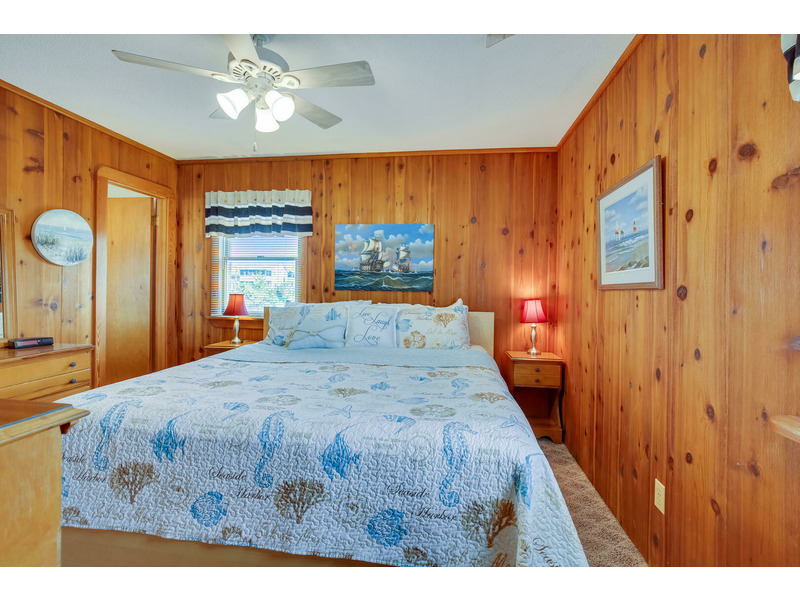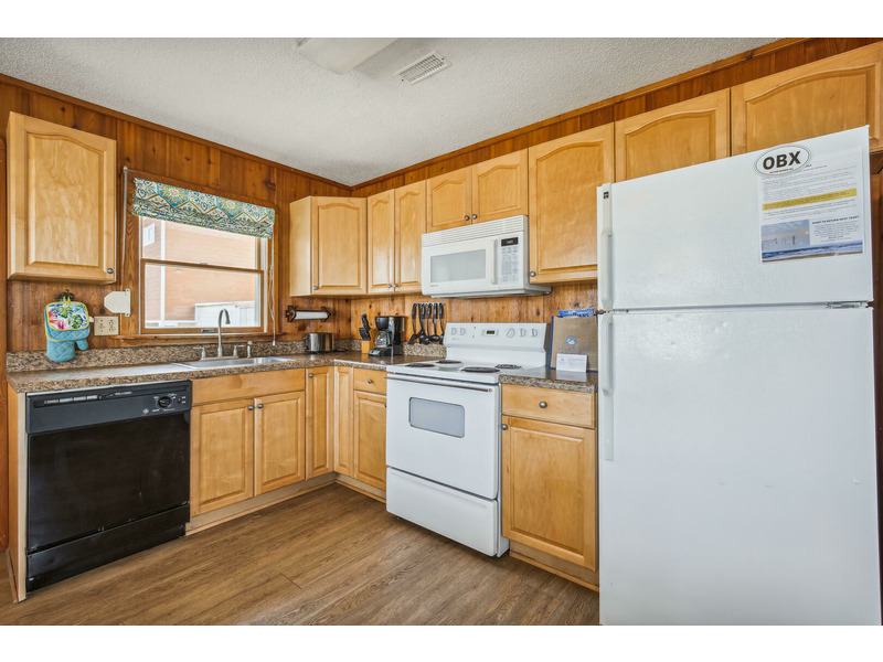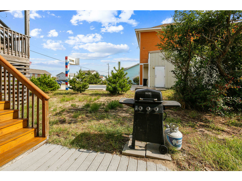 The kitchen features all of the comforts of home, including a dishwasher and microwave. Central air and heat, as well as ceiling fans, keep this home cool on the hottest days of summer, and 2 flat-screen TVs will keep the whole family entertained. For those who prefer to stay connected, Wireless High-Speed Internet Access is available. The rooftop crow's nest offers ocean views, while the covered deck allows guests to enjoy the coastal breeze while enjoying a good book in the shade. An outdoor shower is available for washing off after a day on the beach. You'll enjoy grilling the catch of the day and fresh veggies on the gas grill. Only 400 feet to the beach, Windsong is located at Milepost 2 in Kitty Hawk, just a few blocks from several great restaurants including Rundown Cafe and High Cotton Barbeque. The quiet, residential neighborhood is perfect for evening bike rides, a morning jog, or an easy stroll to the beach.