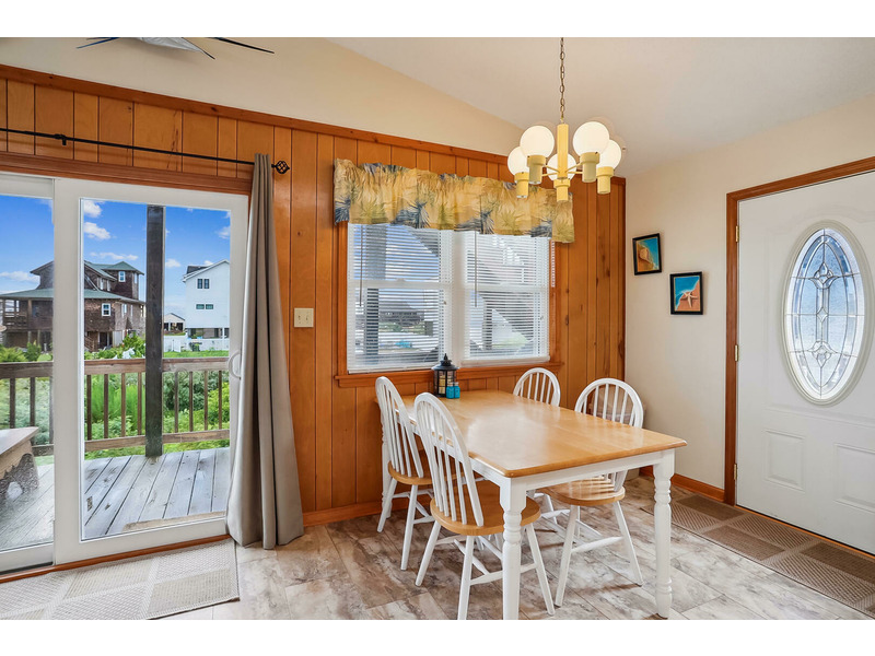 Walk the short 350 feet path to the ocean waves for a wonderful day at the beach, or head over to Seascape Golf Links 18-hole championship course for a round of golf, followed by a quick rinse in the enclosed outside shower. Enjoy the gorgeous views of the ocean and the natural landscape right from your deck, while family and friends play games and relax in the spacious dining area and kitchen! Take a minute walk down to a public access deck overlooking the ocean, or stroll to restaurants such as Rundown Cafe, High Cotton BBQ, and Duck Donuts, just a short walk away.