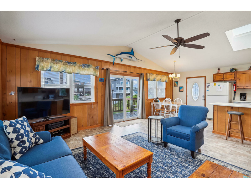 Rest assured everyone in the family will have a place to rest their heads with a Queen bed in the master bedroom, a Full and Twin in the second bedroom, and a bunk set in the third. For a truly relaxing Outer Banks experience with gorgeous views and easy beach access, visit the Sunseeker cottage.