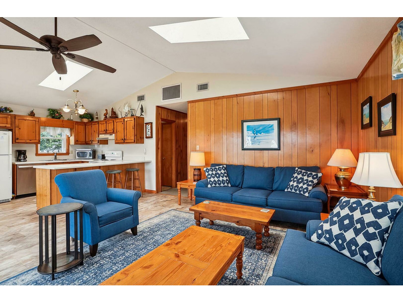 Main Level: living area, kitchen, dining area, Queen bedroom with private bath (shower only), Bedroom with a Twin and Bunk, Bedroom with a Double Bed, Full Hall Bath,.