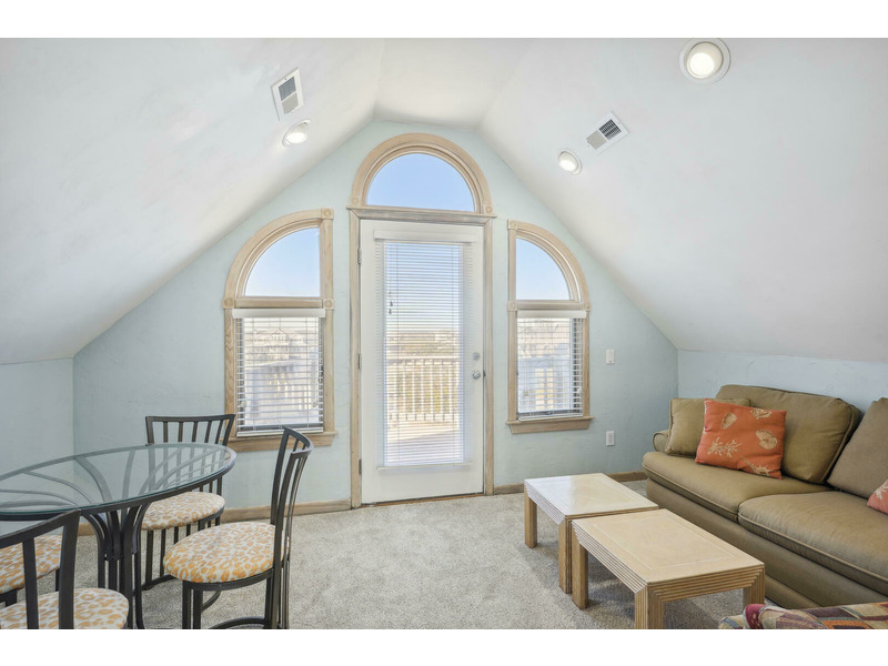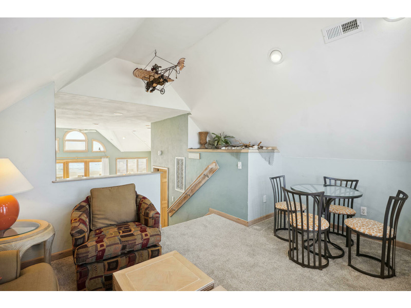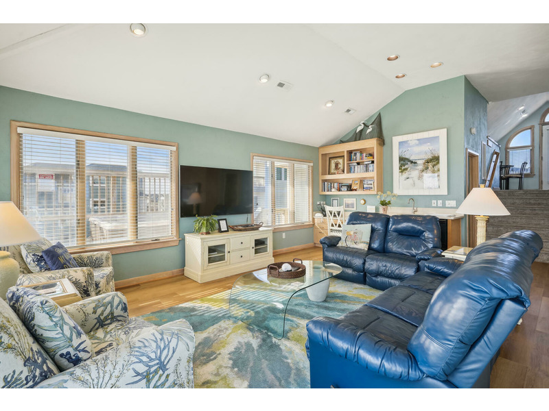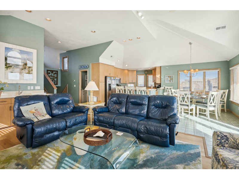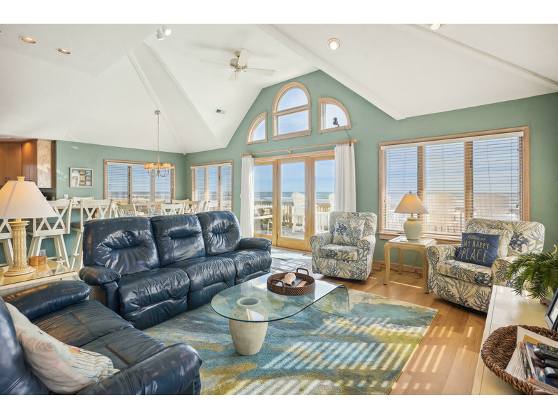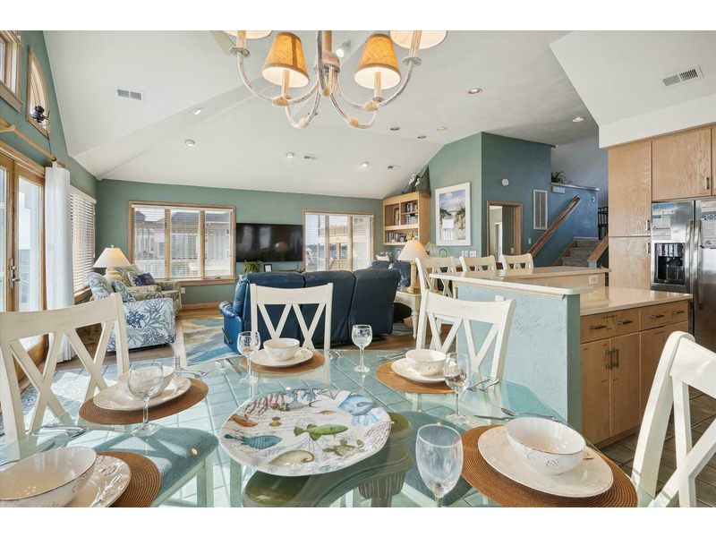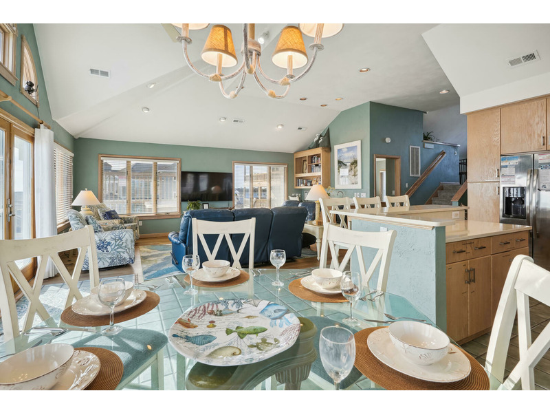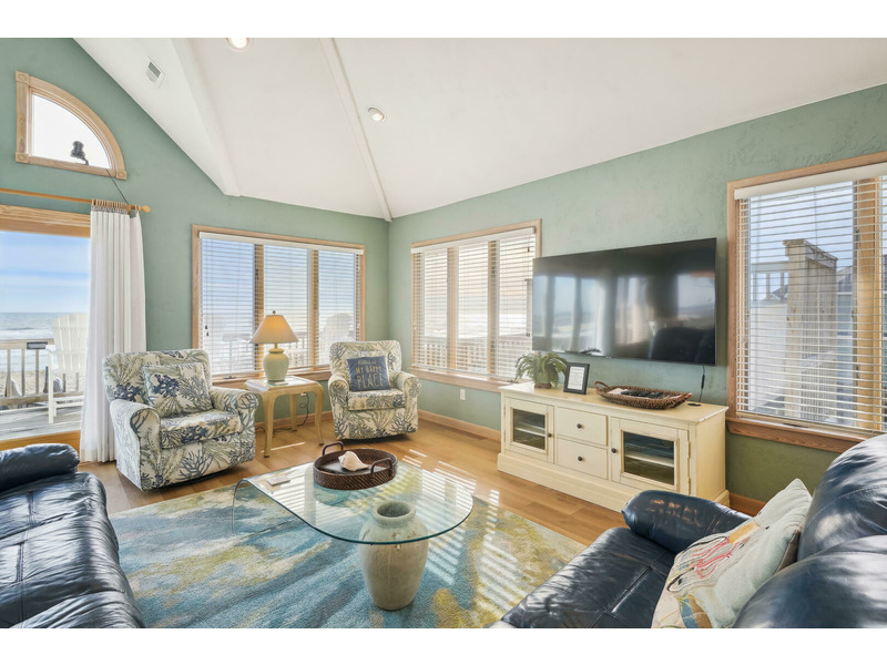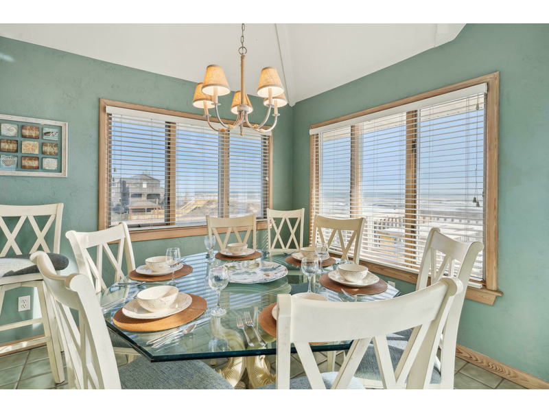 Top Level: *Queen Bedroom*Living Room*Dining Area w/ Table for 8*Kitchen Area w/ Breakfast Bar with seating for 4* Captain's Watch Sitting Area w/ Couch and Table for 4*Half Bath*Wrap Around Deck w/Hot Tub Overlooking Ocean*