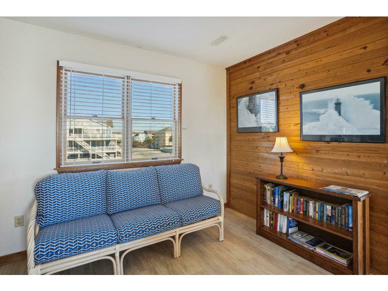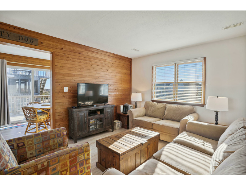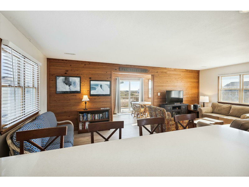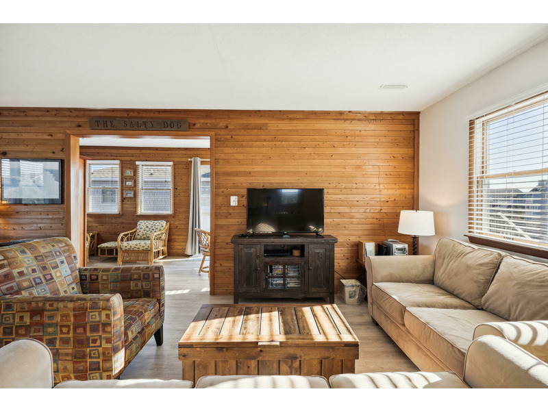At Salty Dog you will enjoy uncompromised ocean views from the upper level deck and the sunroom containing a dining area and a separate reading area provide additional comforts for your perfect vacation. Rich wood accent walls give the home a classic feel without being overwhelming.