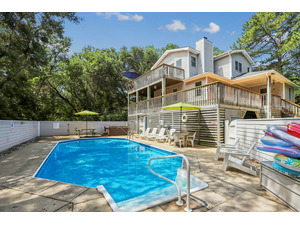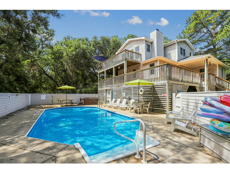 But, you may never want to leave Leeward Inn with all the amenities it has to offer! A Private Pool in the backyard with Hot Tub, lounge chairs, and even a convenient bathroom beside the pool area make it a great spot for families to spend the day. Pool available 5/6-10/7. There is even a swing and sandbox under the house where the kids can play in the shade. Double wraparound decks offer both sun and shade with built-in benches, deck chairs, and even a hammock to relax in! A screened porch with a picnic table is on the top level and is a perfect spot for a quick outdoor meal. Cook up that meal on the built-in charcoal grill and you'll have hamburgers and hot dogs for a crowd in no time! Inside, the comfortable furnishings will make your family feel at home. The full kitchen with a dishwasher and microwave make it easy to prepare a quick breakfast or a big family dinner, and the washer and dryer provided help to keep bathing suits and beach towels ready for another day of Fun in the Sun. Central air and heat, as well as ceiling fans, will keep everything cool and comfortable even on the hottest OBX days. Fireplace is decorative only.