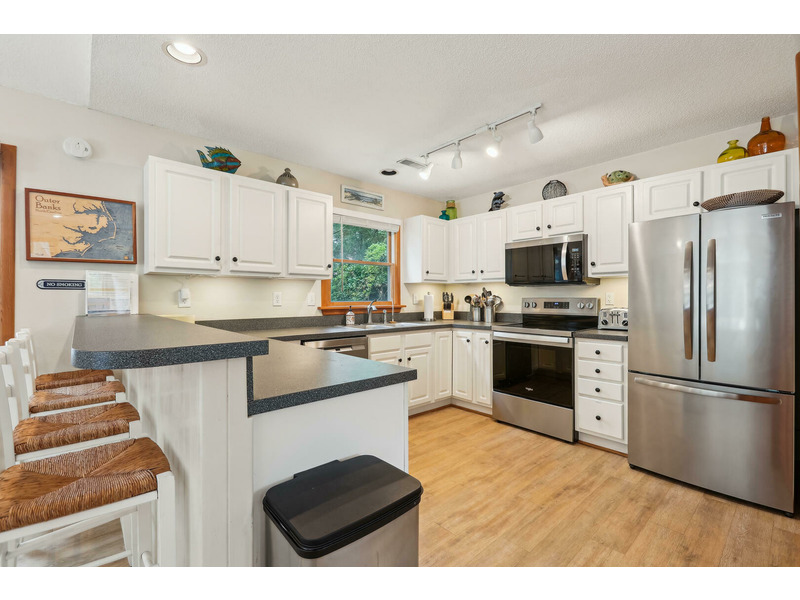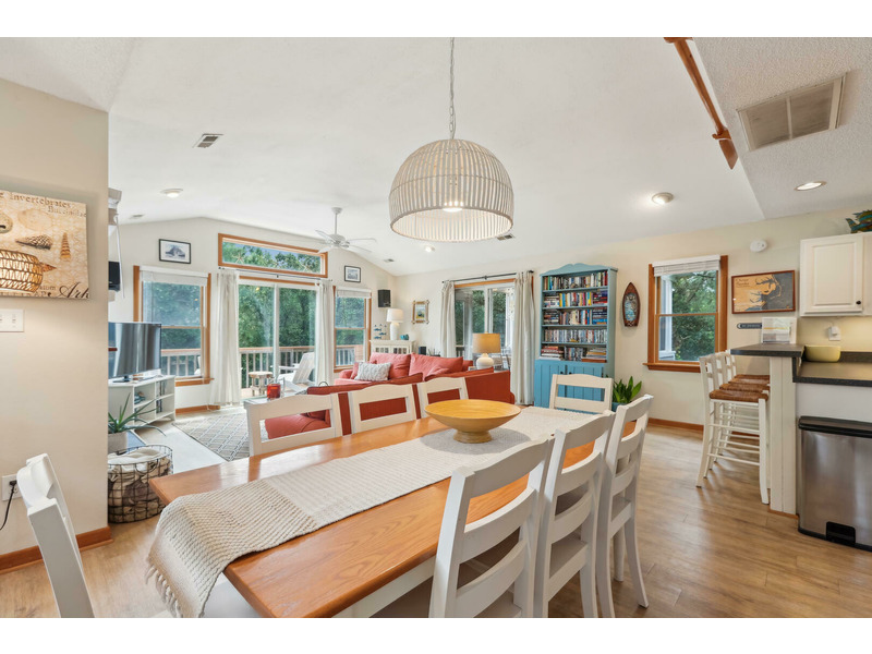 Located in the quiet residential neighborhood of Chicahauk in Southern Shores, this vacation home is just a short walk to the beach and offers plenty of opportunities for family activities during your stay, including biking, boating, swimming, surfing, shell seeking, and more! The spacious kitchen, adorned with coastal accents and equipped with every essential, invites you to whip up your favorite meals while reminiscing about the day's adventures. The light streaming through the large windows brightens the space, evoking feelings of warmth and relaxation. Whether you're brewing your morning coffee or preparing a family feast, this home ensures a comfortable and memorable stay, making every moment of your vacation truly special.