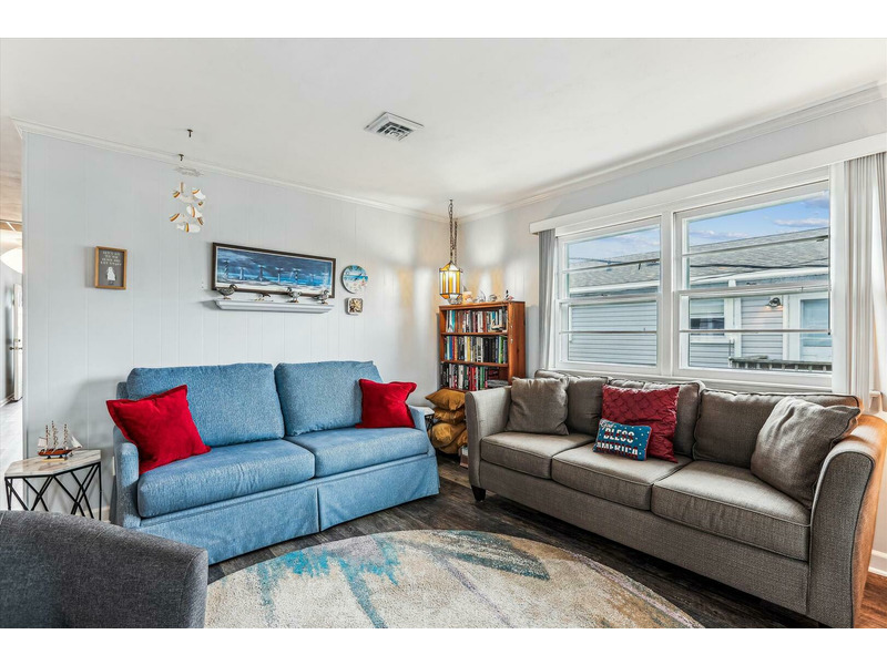 Step into 'Blankenship,' where timeless charm meets modern comfort. Unwind amidst the cozy seating, enveloped by curated bookshelves and gentle oceanic hues. The spacious living area, accentuated with a stunning area rug, beckons for heartfelt conversations, movie nights, or simply curling up with a good book. Let this be your sanctuary, an intimate escape to rejuvenate and create cherished memories.