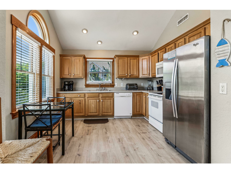 Discover coastal charm in this beautifully designed pet friendly vacation retreat with Private Pool. High vaulted ceilings open up the space, inviting sunlight through arched windows in the open concept living area where comfort meets the allure of the coast.