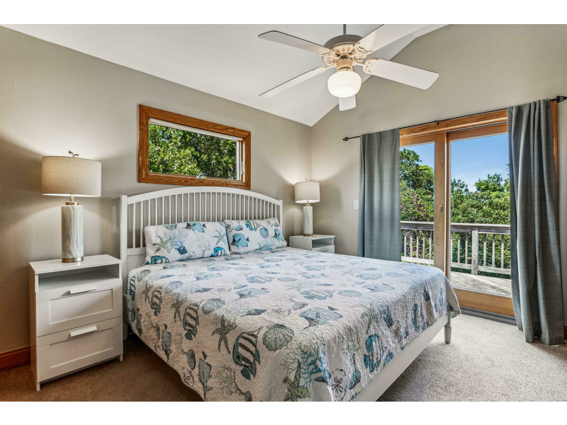 - Middle Level: King Master with whirlpool tub and stand alone shower, 3 Queen bedrooms, Hall Bath. Covered decks.