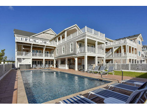 Set sail at Crew Quarters, a 16 bedroom oceanfront escape in the exclusive Pine Island Club community of Corolla. Gather the entire crew for an unforgettable vacation in this high-end, Life Saving Station-themed, waterside haven. Thoughtfully designed to save you from reality, this beautiful home features nautical upscale furnishings, and has been professionally decorated both indoors and out. Awash with amenities, Crew Quarters includes a stunning outdoor area with private pool, outdoor bar, and hot tub, direct beach access with a dune-top oceanview deck, a rec room with poker, shuffleboard, and pool tables, home theater room, elevator, arcade, workout room, and more!