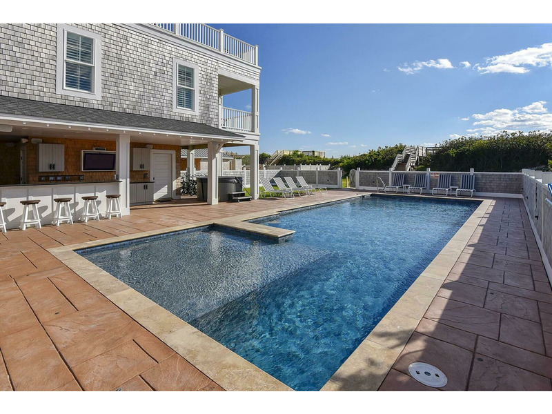 Step outside the rec room doors and the fun continues in the outdoor recreation area. Grilling, tanning, swimming, lounging - the possibilities are endless. A sitting area with a stunning, custom oyster shell outdoor fireplace (available mid- Sept through mid-April) invites you to sit down and unwind. The large cabana bar with TV is perfect for catching the big game after splashing in the pool. A hot tub is located in the pool area for your relaxation pleasure, and a wet deck (or shallow area) in the pool is the perfect place to dip your feet and cool off. The Wilmington Grill is a "galley dweller's" dream, perfect for cooking out. The beach is just steps over the private walkway with dune deck.