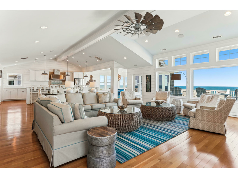 Other notable features include an elevator, high-speed internet access, Apple TV in common areas, high capacity gas grill, as well as daily beach chair (6) and umbrella (2) set-up from Memorial Day to Labor Day, with the option to request additional products and services through OBX Beach Cabanas. Premium Linens are provided with beds made for all arriving guests. Guests of this home also receive reduced greens fees at the Kilmarlic Golf Club, and for a discounted fee, use of the Pine Island Racquet Club and Fitness Center.