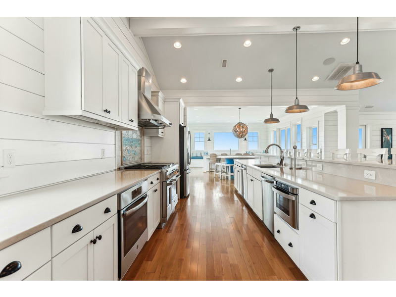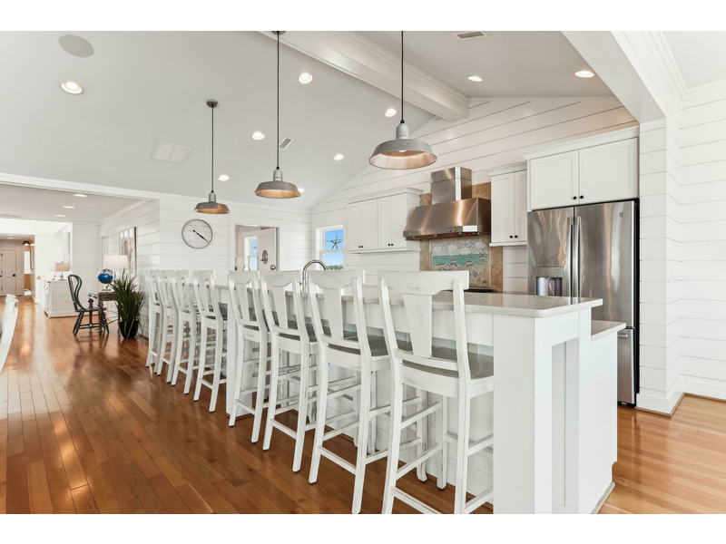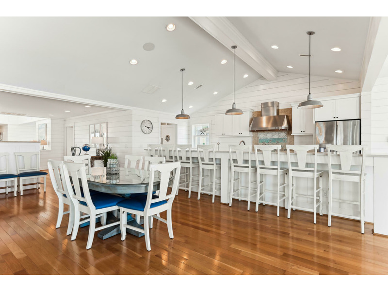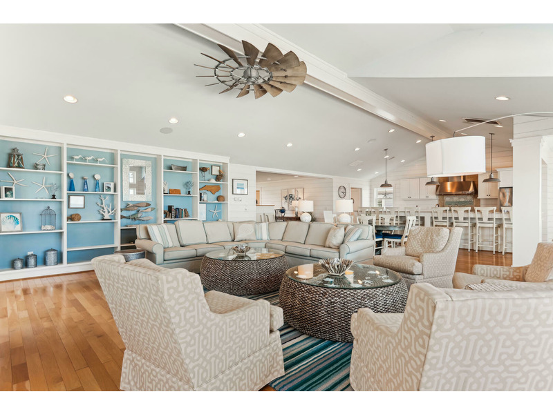 Inside, the experience is equally captivating with the sea-inspired professionally designed and decorated quality furnishings and decor. With a home theater room, exercise room, arcade, rec room and "Oyster Bar", there is something for everyone in your group. With sixteen master bedrooms: 14 Kings and 2 with bunk beds (2-twin/2-pyramid) to accommodate 38 guests (each with a flat screen TV and private bath), multiple sitting areas, dens, kitchens, dining and bar areas, along with 3 half baths (lower level, upper level and outdoor pool powder rooms) your party can easily spread out; of course, congregate together on the top level in the expansive great room with living, dining, kitchen, butler's pantry and "Sandbar" areas. This is so "Knot Home!" You will surely enjoy making it yours for a week or two.