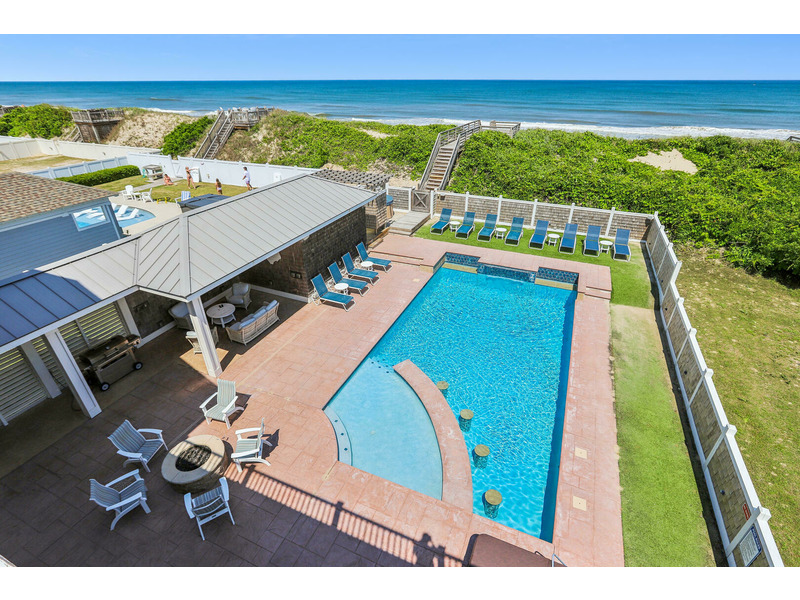 Your Barrier Island Experience begins and IS within the walls and on the grounds of this private upscale seaside resort! With panoramic ocean-to-sound views and plenty of comfortable outdoor living spaces, you will truly enjoy soaking it all in and sunning it up on one of the many open decks, covered porches and sitting areas. The large private pool with bar, poolside cabana, outdoor showers, hot tub and fire pit will provide hours of relaxation, enjoyment and entertainment with a private walkway to the beach beyond.