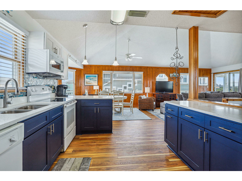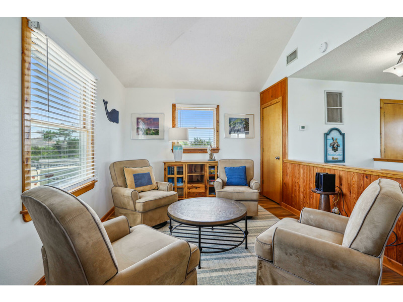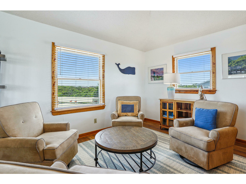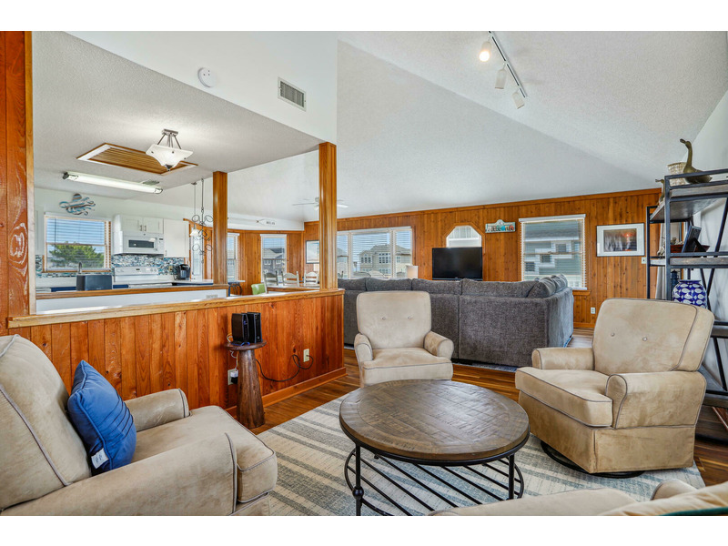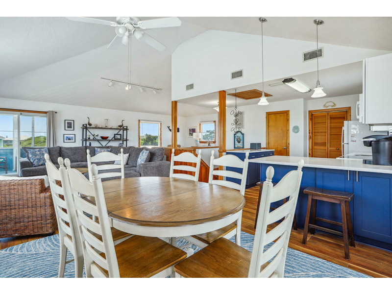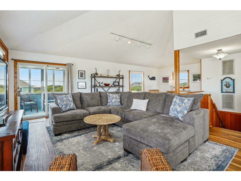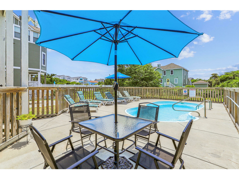 As Good As It Gets is a vibrant, modern vacation home offering an ideal oasis located just steps away from the ocean. The house features a joyful, beach-themed living space with an open-plan layout connecting the plush seating area to the kitchen and dining space under airy, high ceilings. Culinary activities are a delight in the completely remodeled kitchen, which is brightly decorated, fully equipped with new appliances, and offers generous counter space. Guests can easily access the magnificent beach and spend their days enjoying the sun, surf, and sand. When not at the ocean, relaxation awaits at the private pool, which is available from May through early October. The home also provides multiple sun and shade decks, a Screened Porch, and a dedicated ground-floor den with a TV and futon for the kids. Located in the Bayberry Bluffs neighborhood, guests have easy access to family bike rides and quick trips to downtown Duck's unique shops, dining, and the popular soundfront boardwalk.