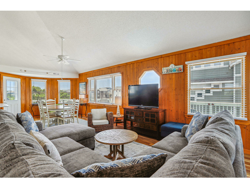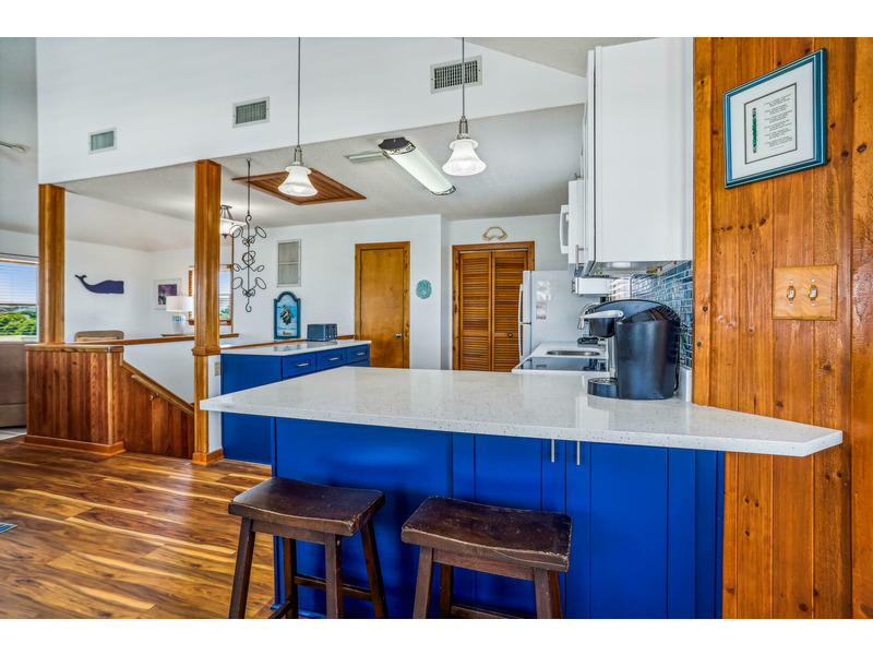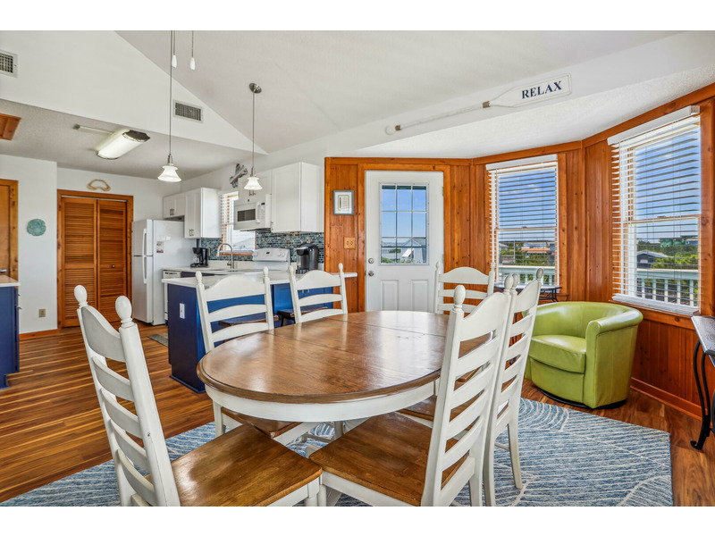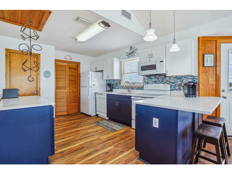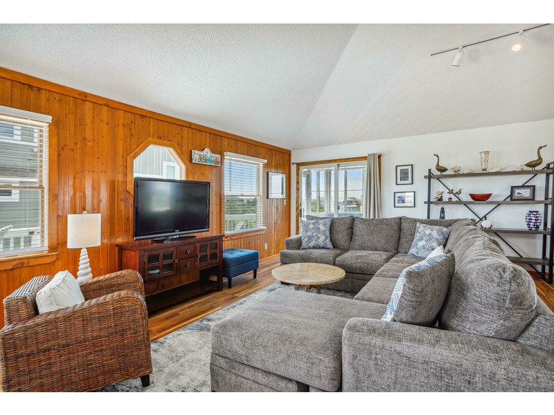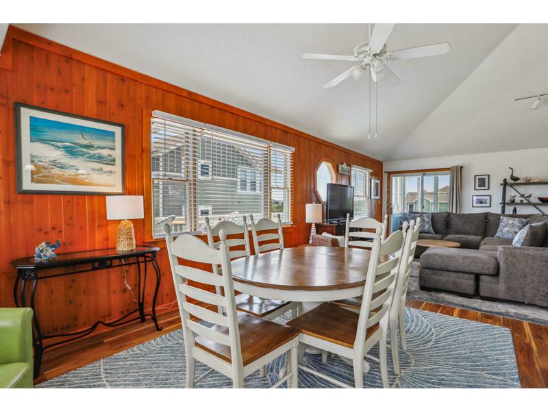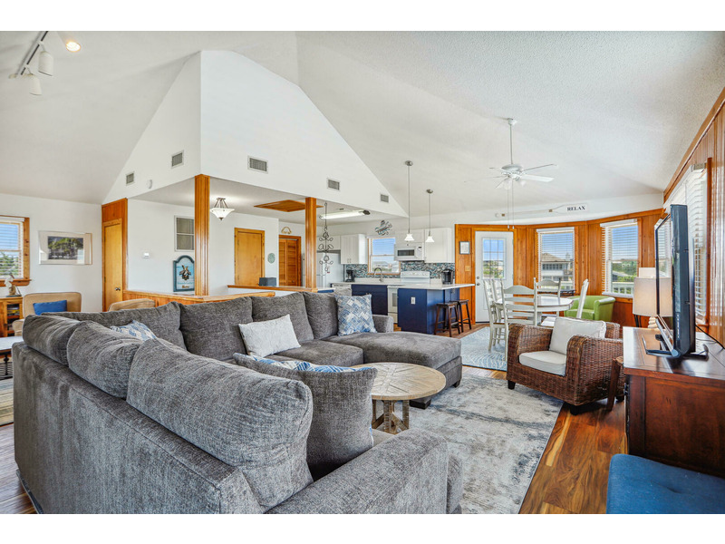 As Good As It Gets is a vibrant, modern vacation home offering an ideal oasis located just steps away from the ocean. The house features a joyful, beach-themed living space with an open-plan layout connecting the plush seating area to the kitchen and dining space under airy, high ceilings. Culinary activities are a delight in the completely remodeled kitchen, which is brightly decorated, fully equipped with new appliances, and offers generous counter space. Guests can easily access the magnificent beach and spend their days enjoying the sun, surf, and sand. When not at the ocean, relaxation awaits at the private pool, which is available from May through early October. The home also provides multiple sun and shade decks, a Screened Porch, and a dedicated ground-floor den with a TV and futon for the kids. Located in the Bayberry Bluffs neighborhood, guests have easy access to family bike rides and quick trips to downtown Duck's unique shops, dining, and the popular soundfront boardwalk.