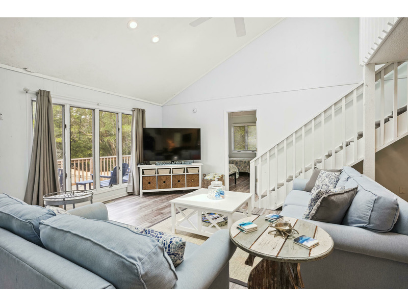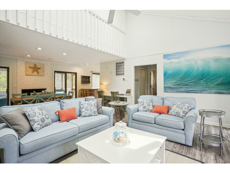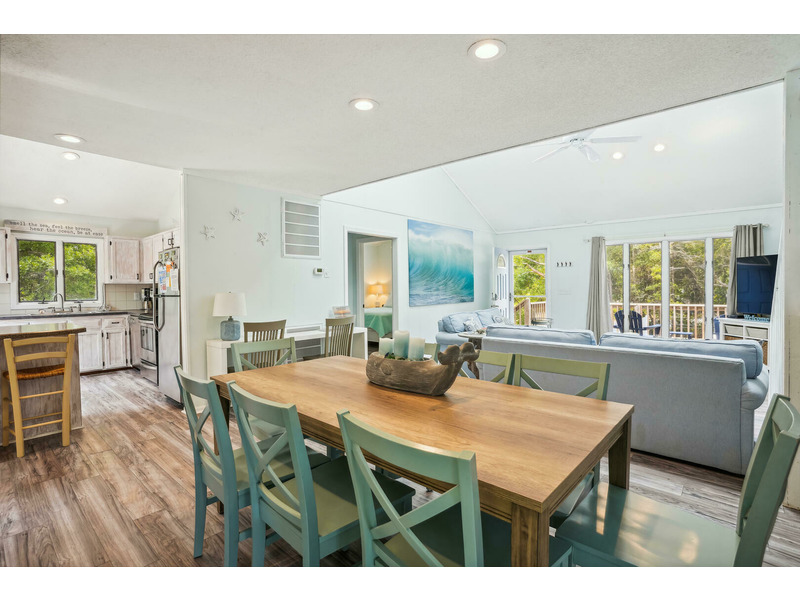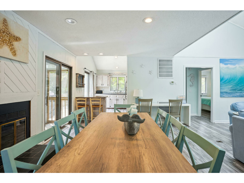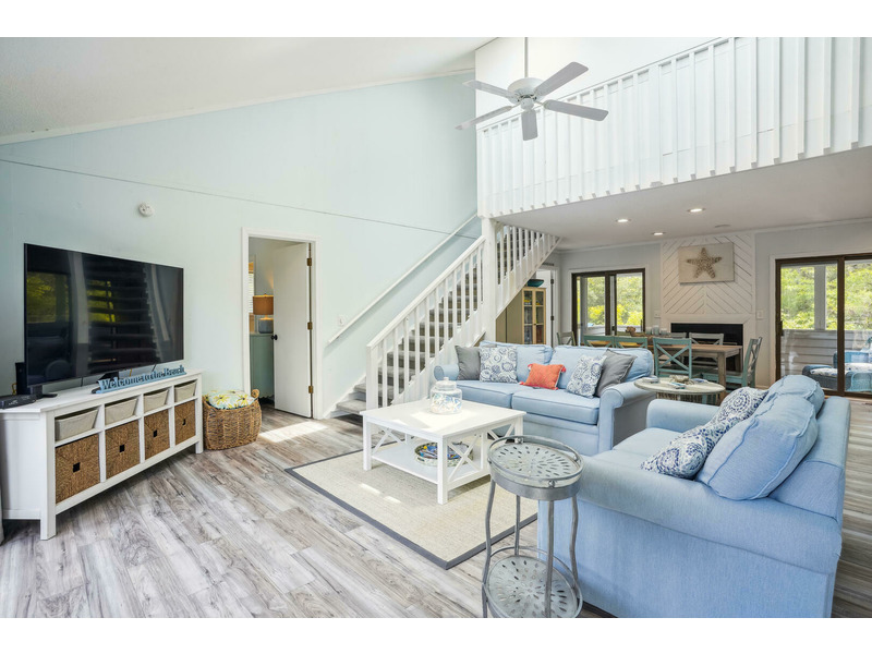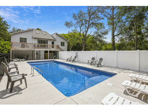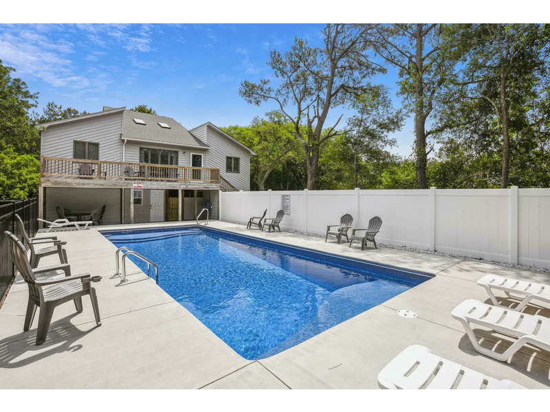 The House of Friends welcomes guests to a serene coastal retreat in the family-friendly Chicahauk neighborhood of Southern Shores, just a short walk from the beach. The home features a spacious living room with plush sofas and an inviting loft, all characterized by tranquil blue hues and ample natural light. The contemporary, open-plan kitchen seamlessly blends rustic charm with modern functionality, offering sleek stainless-steel appliances and a cozy breakfast nook. Outside, the large deck overlooks a shimmering 16x38 private pool that is available to be heated for an additional fee. Practical exterior amenities include an outside shower, a fish cleaning station, and two gas grills, plus a charcoal grill for preparing meals. Guests have access to numerous Chicahauk Community amenities, including tennis courts, a playground, a basketball court, a soccer field, and a kayak launch. Exclusive beach parking areas are also provided for Chicahauk guests.