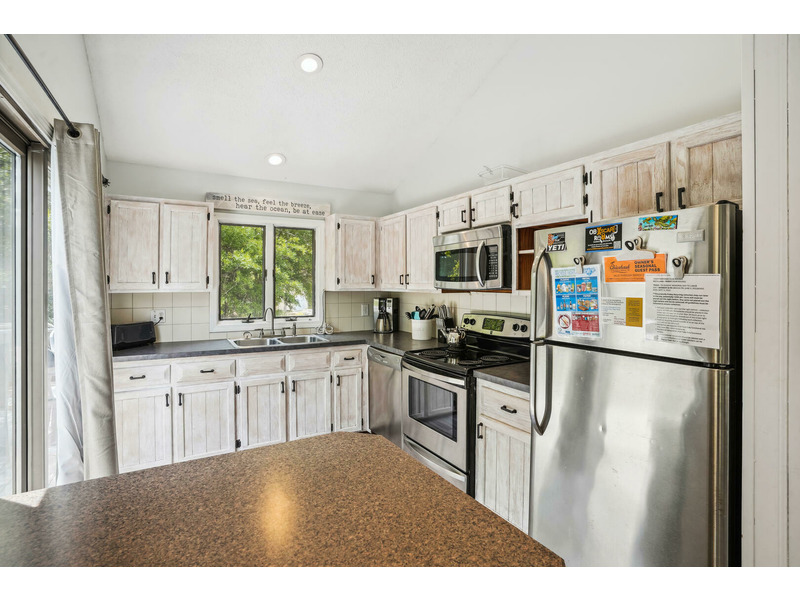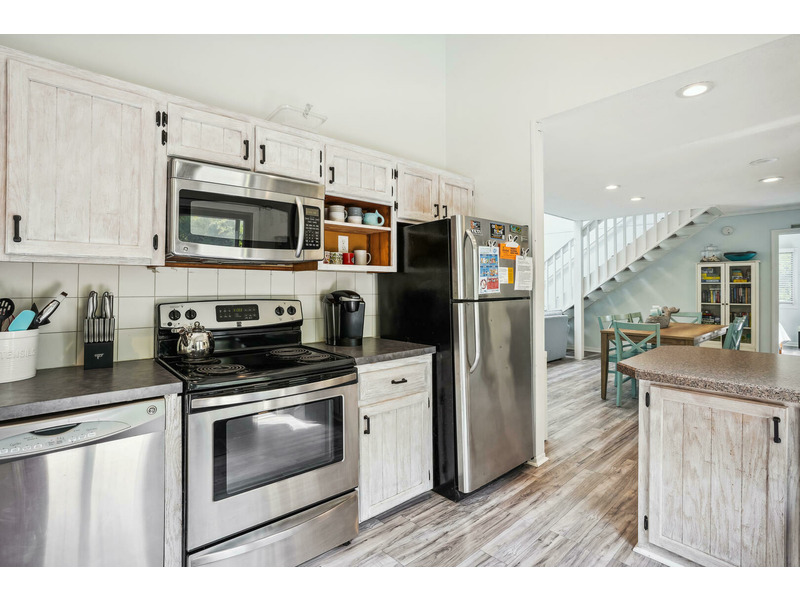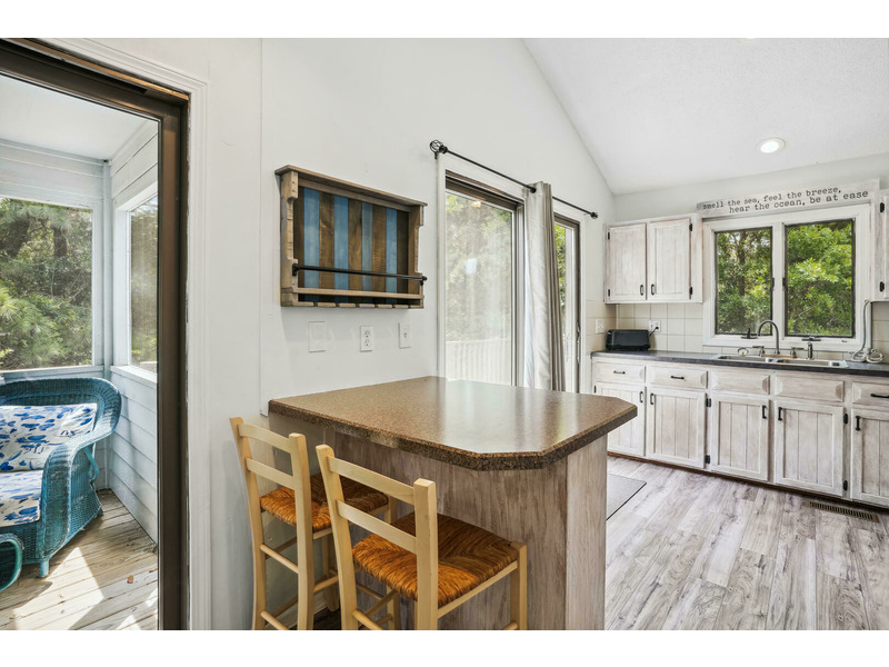 Middle Floor: 1 King Bedroom with Jack-n-Jill Bathroom Shared with 1 Twin Bedroom, 1 Queen Bedroom That Shares a Full Bathroom with The Hall, Kitchen with Breakfast Bar, Dining Room, Living Room, Laundry Closet with Washer/Dryer, Furnished Screened Porch, Sun Decks