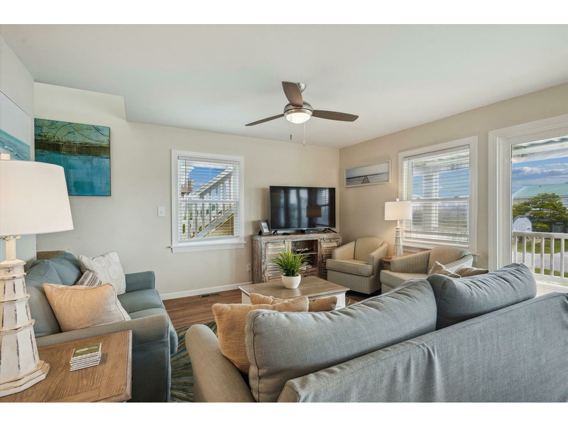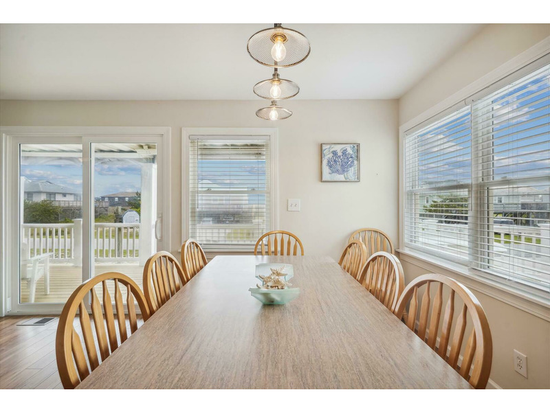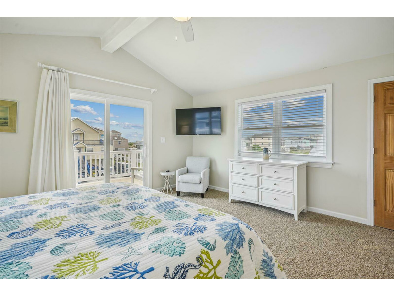 The top level of "Gone to Carolina" features 2 king bedrooms, a bunk bedroom, and a full hall bath with double sinks! A washer and dryer are provided for your convenience to keep linens, beach towels, and clothes laundered throughout your stay. For indoor entertainment, stay connected with complimentary WIFI and 6 TVs! Located between the highways in Kitty Hawk, "Gone to Carolina" is not only wonderfully close to the famous John's Drive-In for a famous milkshake and fried dolphin boat, but you will also not want to miss a trip to Bucaneer's Walk for a famous junkyard dog from "Captain Frank's" before shopping at the vintage and antique stores, bookstore, gift shop, and grabbing a fresh ice cream cone on the way out nearby! The beach, historical sites, shops, and restaurants are all very close to "Gone to Carolina."