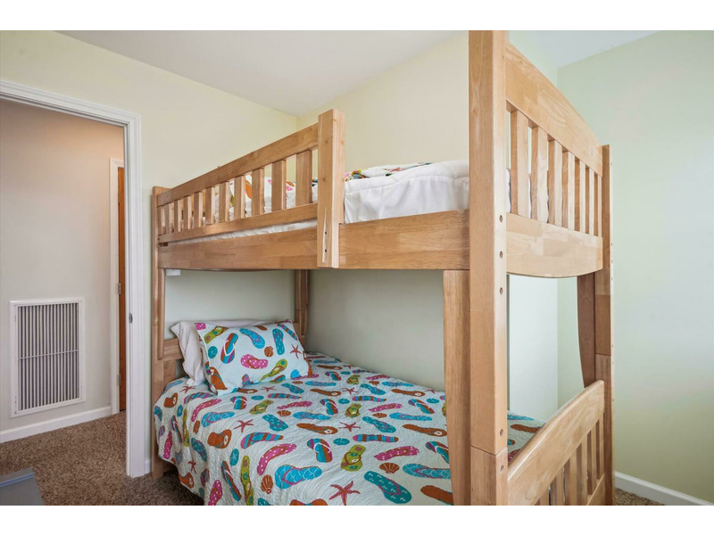 Top Level: King Bedroom, Full Hall bath with twin sinks and shower, Bunk Bedroom, Queen Bedroom