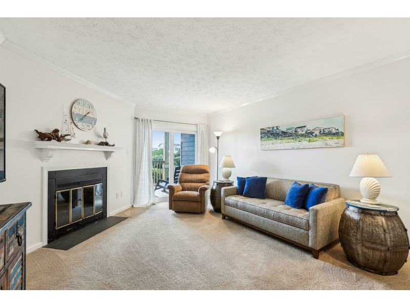 New couch and living room flooring for 2026! Heavens Nest welcomes you with a cozy and tidy living space that reflects its seaside charm. This oceanfront condo at Duck Blind Villas offers a glimpse into a relaxed beach lifestyle. The 3-bedroom, 2-bath home, boasts a comfortable dining area for six, a snug living room with plush seating, and an inviting fireplace, all washed in soft, neutral tones. The first-floor location means only seven steps to enter, making beach trips a breeze. Plus, it's just a quick walk from the covered porch to the community pool or the ocean's edge. Sleeping arrangements include two queen beds; one in a master suite; two twins, and a queen-size sleep sofa, perfect for family or friends.