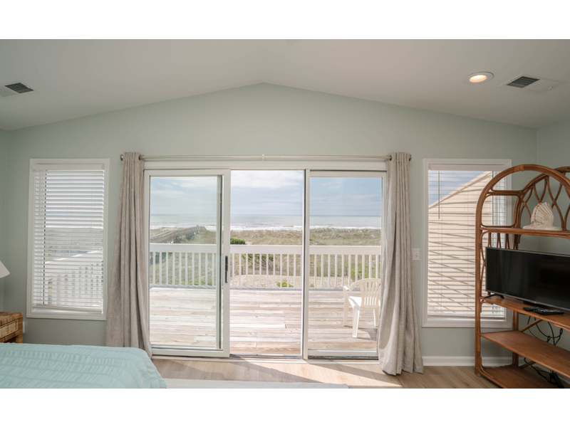 Newly updated with luxury vinyl floors, new kitchen, updated living room and bedrooms!  The decor is light, bright and beachy! This oceanfront home offers wonderful views, spacious bedrooms, a large common area and decks. Ceiling fans, Wi-Fi and cable TV in every bedroom and the living room are additional conveniences. Beach access is right next door! 4 Bedroom/4Bath. Sleeps 8. This property does not accommodate golf carts.