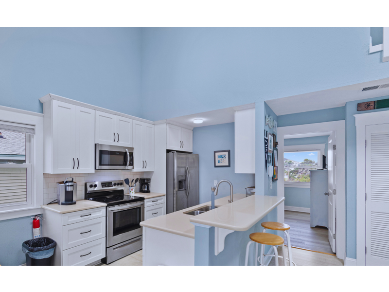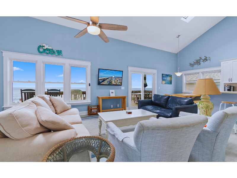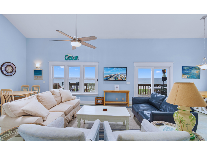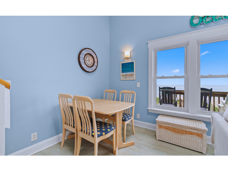 Enjoy this oceanfront beach house just steps from the sand. Drink your coffee in the new kitchen on the deck for bird or dolphin watching.  The balconies off the upstairs bedrooms are great too if you prefer looking at the Intracoastal Waterway.  Yes, there are great views on both sides of the house!  The bright and airy open floor plan includes an updated kitchen, appliances and quartz countertops.  Living room with TV.  Wireless Internet included.  **Bring your own linens and towels for your stay**