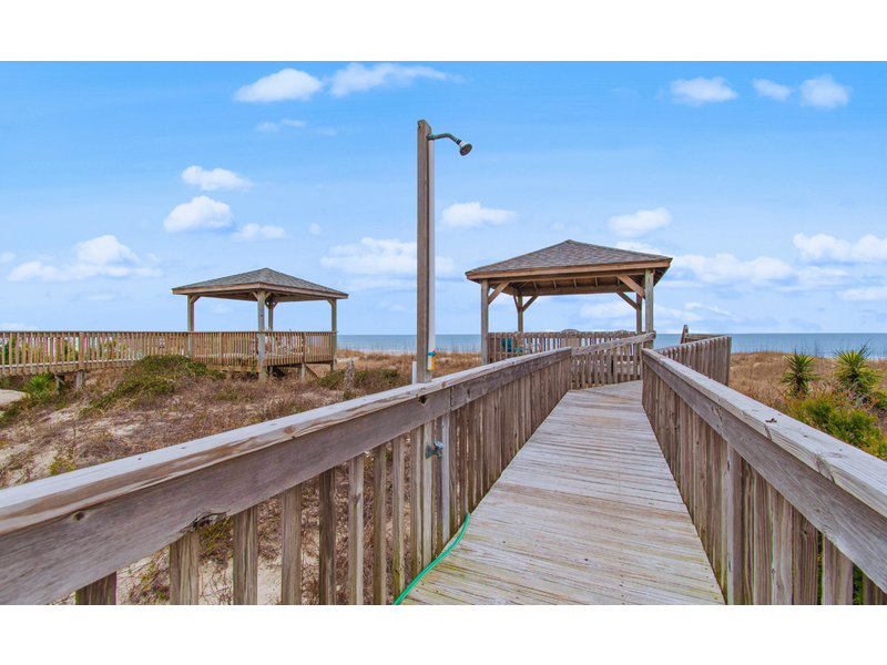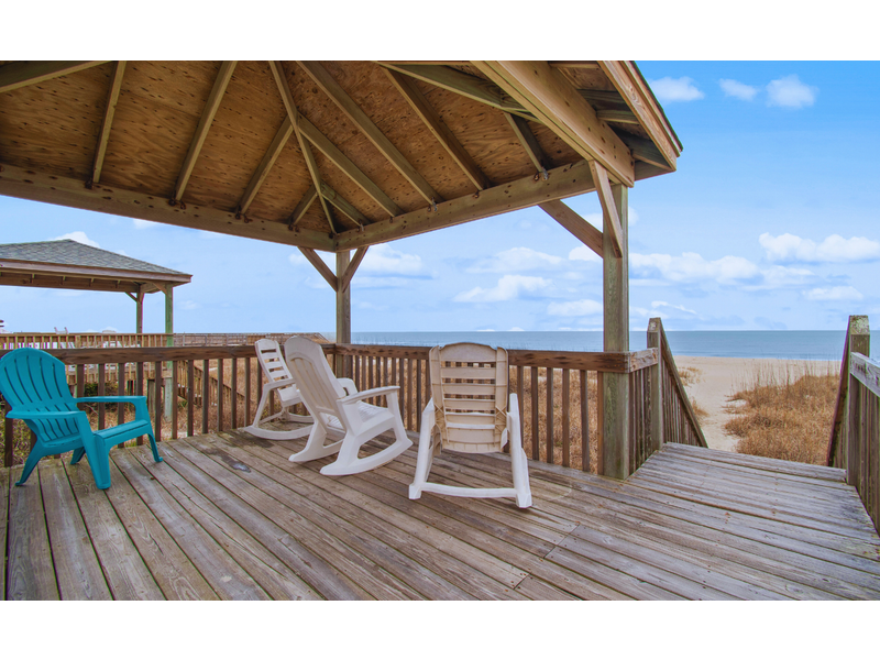 - Deck access with rocking chairs and private beach access