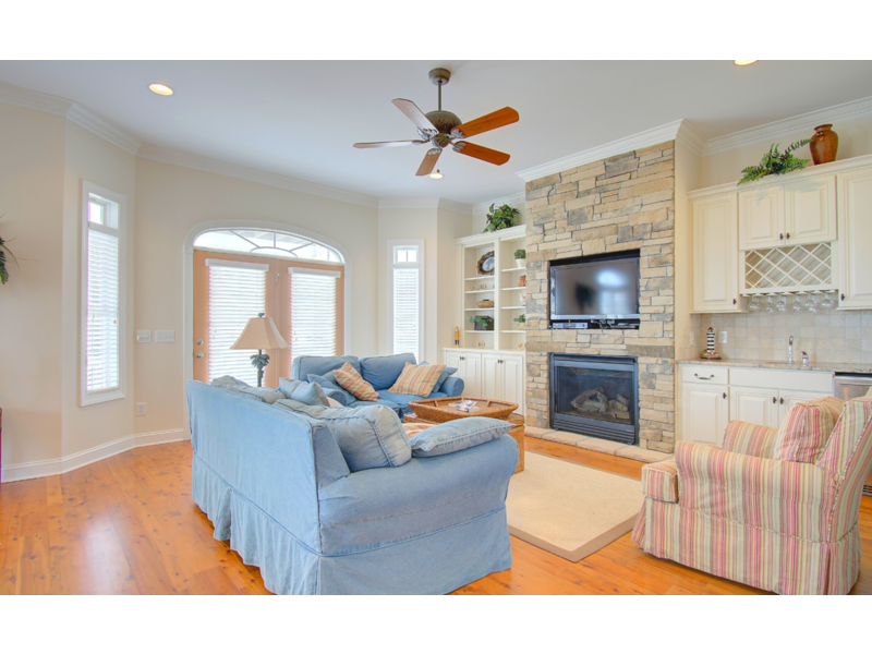 • Living Room with gas stone fireplace with TV