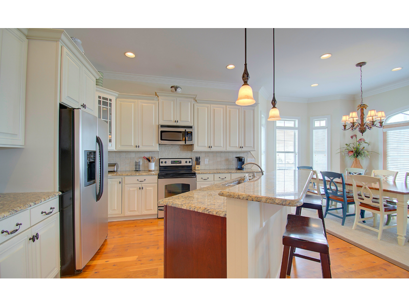 This is a stunning 5 bedroom and 5 bathroom home on the canal. The kitchen offers white cabinets with under-cabinet lighting, granite counter top with ceramic tile backslash, stainless steel appliances and center island.