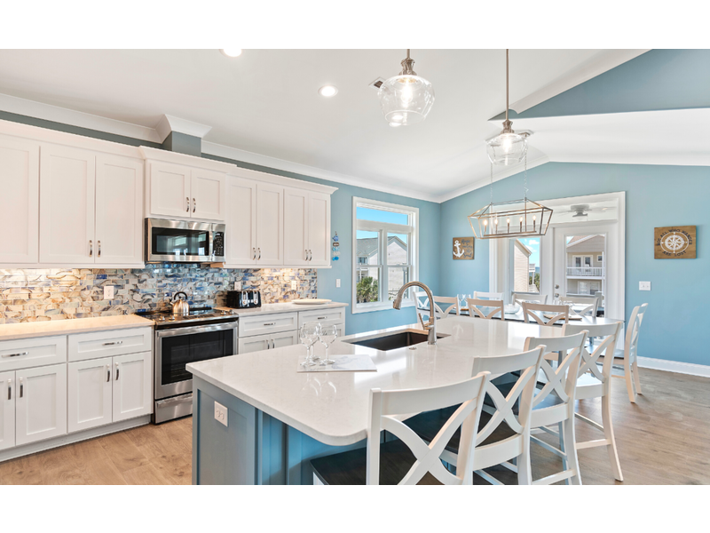 Welcome to Deja Blu!! This is a brand new, custom built 5 bedroom, 5.5 bath. Just imagine what great memories you can create with 20 of your favorite friends & family members. Take time out of your beach day to enjoy the peak-a-boo views of the ocean and some glimpses of the east end of the island from the upper decks. Sleep in style in our custom-built, Amish bedroom suits. Take a dip or splash around in the 12x26 in-ground pool. Pool can be heated to 80 degrees for no additional charge, for the entirety of your visit when you stay June 1-Sept 1