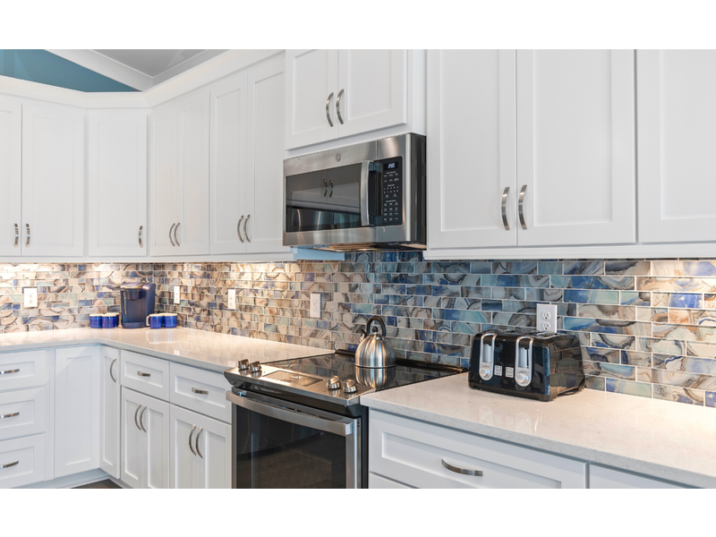 - Fully stocked kitchen with all stainless-steel appliances, 28 cubic foot refrigerator, quartz countertops, food pantry