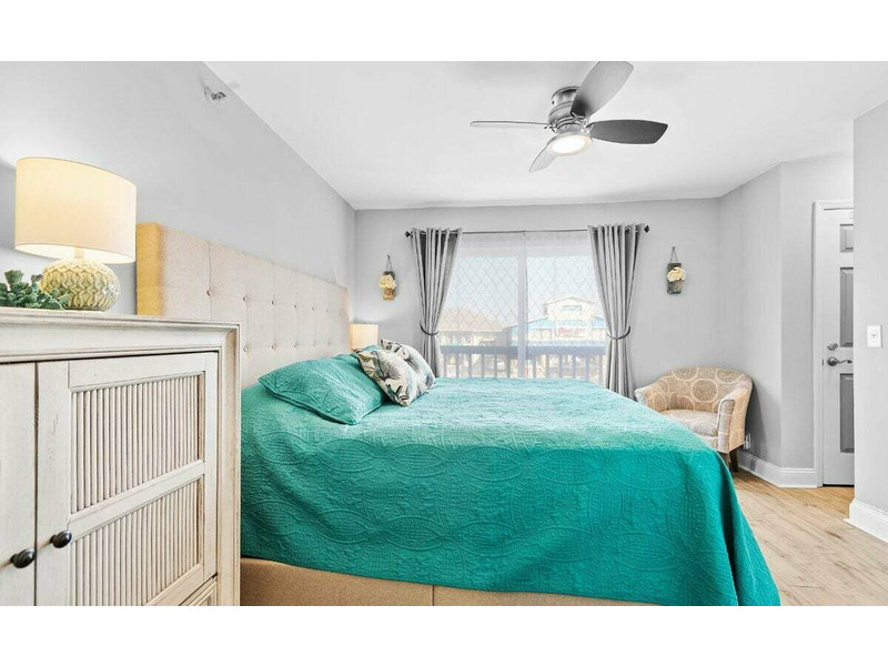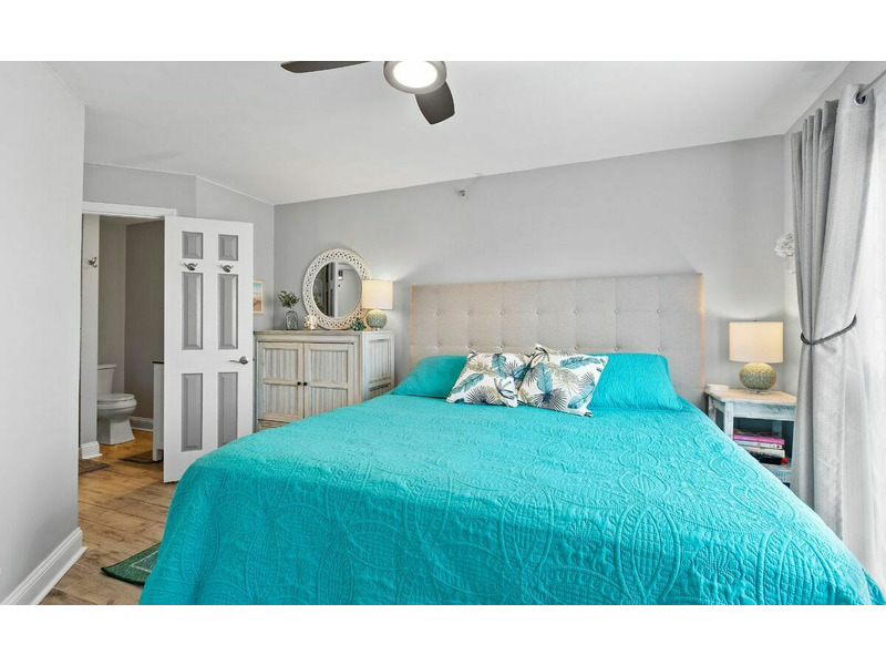 • Master bedroom with a king bed, ceiling fan and flat screen TV with streaming capabilities