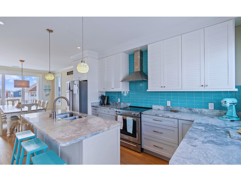 • Fully equipped kitchen, stainless steel appliances, Keurig, small kitchen island with 4 barstools