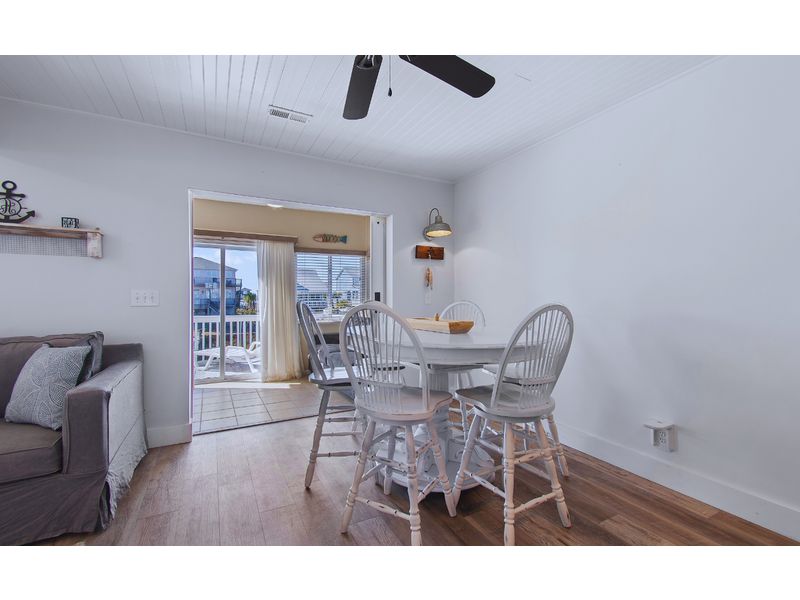 - Back deck overlooking canal with seating options a portion of deck is partially covered with ceiling fan