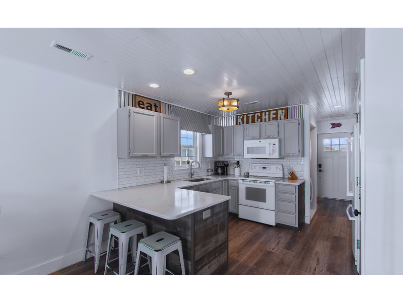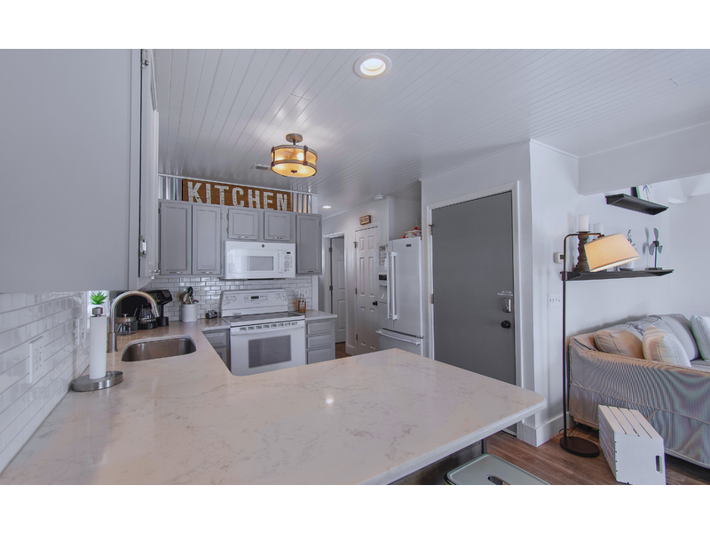 - Fully stocked kitchen with all appliances, quartz countertops, pantry