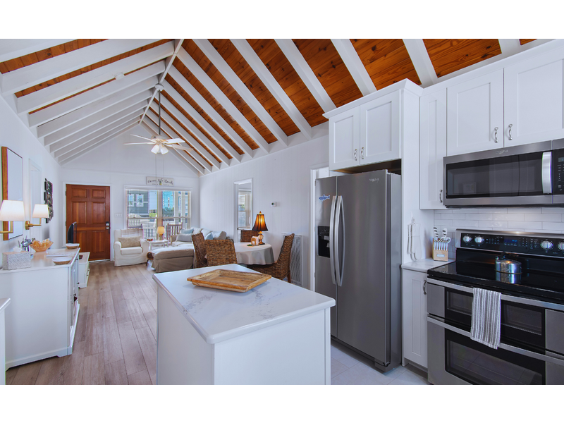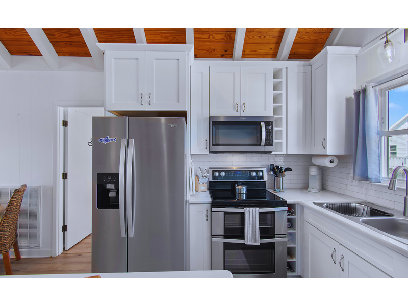 - Fully equipped kitchen with quartz countertops, stainless steel appliances, double oven, Ninja air fryer/oven/toaster, Keurig, back door to access back yard