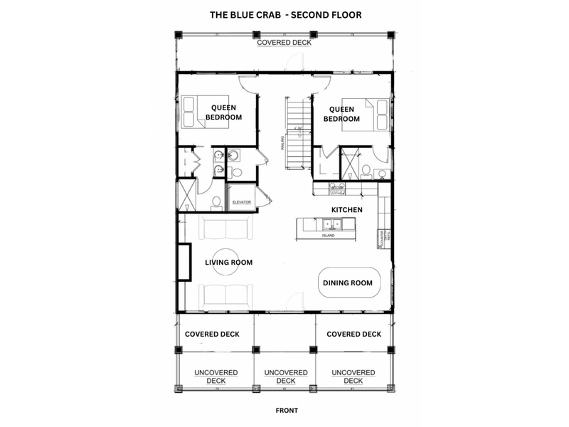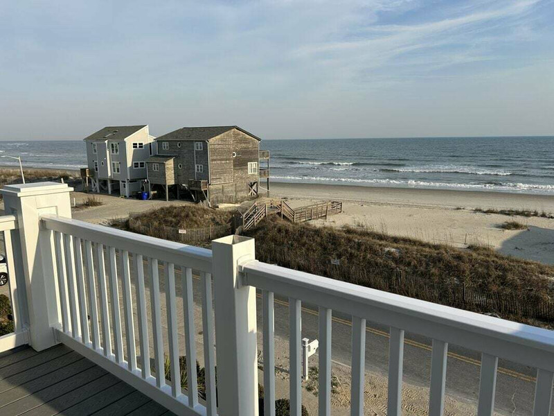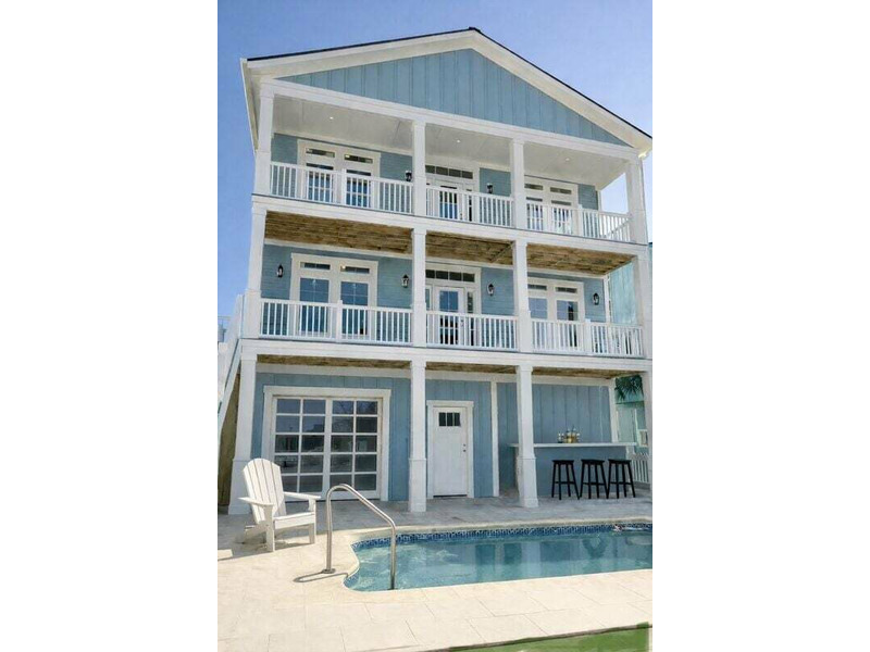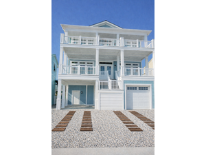 New to our inventory for 2026!. The Blue Crab is a spacious second row home with an ocean front view. Large covered decks on front and back capture both the sunrise and the sunset. The floor plan places the kitchen, living room, dining area, powder room, and two queen bedrooms with balcony access on the second floor. The primary bedroom, a queen, and a bunk room, second living area are on the first floor. All bedrooms have ensuite bathrooms and balcony or deck access. The elevator and pool area push this new home over the top to becoming your favorite Ocean Isle Beach home to visit.