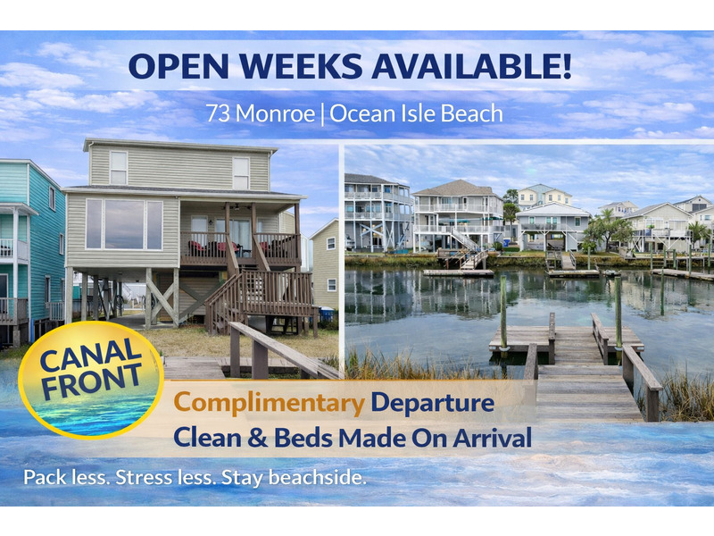 73 Monroe Street, an inviting four-bedroom, three-bath coastal retreat in the heart of Ocean Isle Beach. Direct beach access, you can enjoy sunny days on the sand or spend time along the canal, perfect for fishing, kayaking and other water activities.