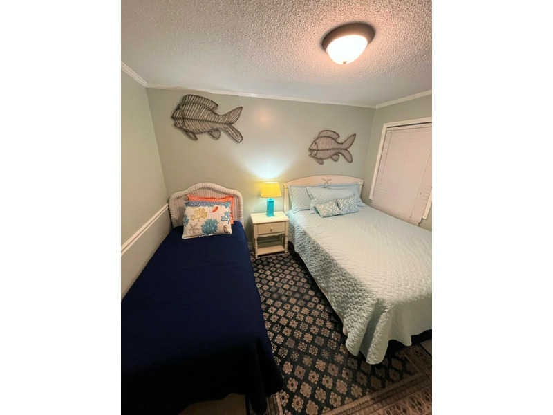 This unit comes fully equipped with central heat and air, a full kitchen including a dishwasher and microwave, washer and dryer in the condo, Keurig coffeemaker, and regular coffeemaker, TVs in the bedrooms and the living room, with guests own streaming services and wireless internet access. The dining table seats six.
