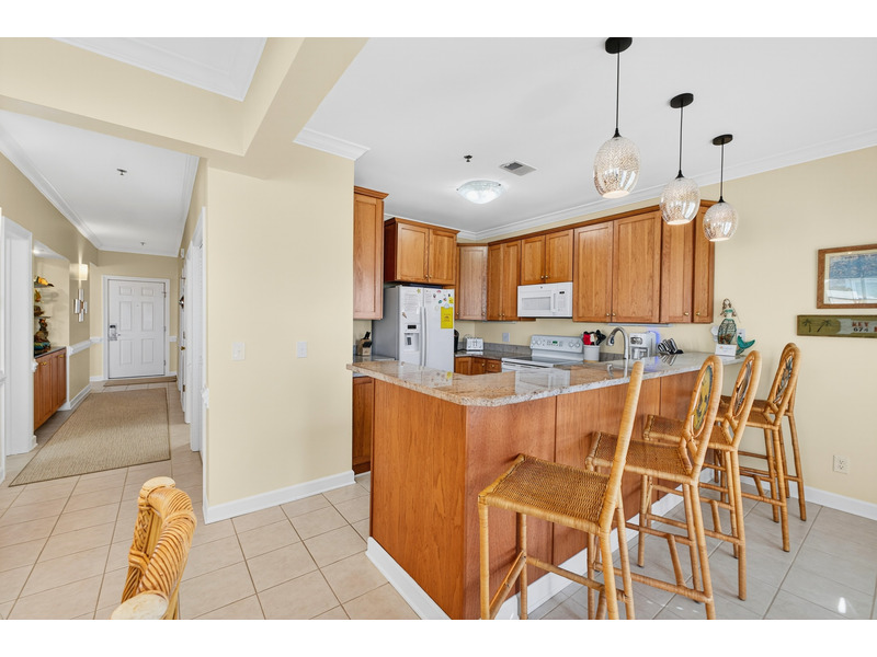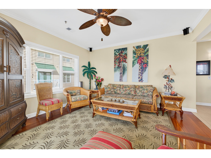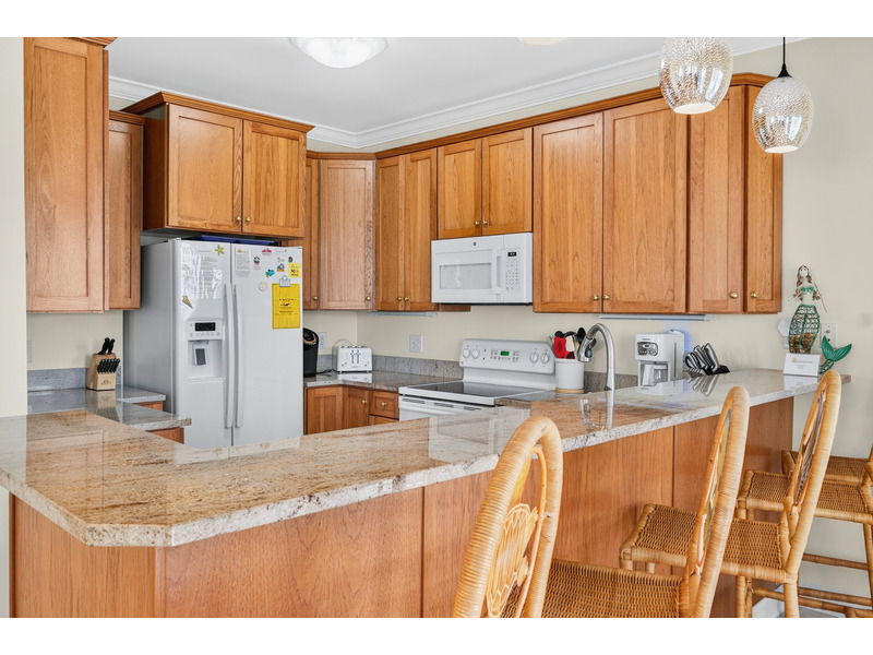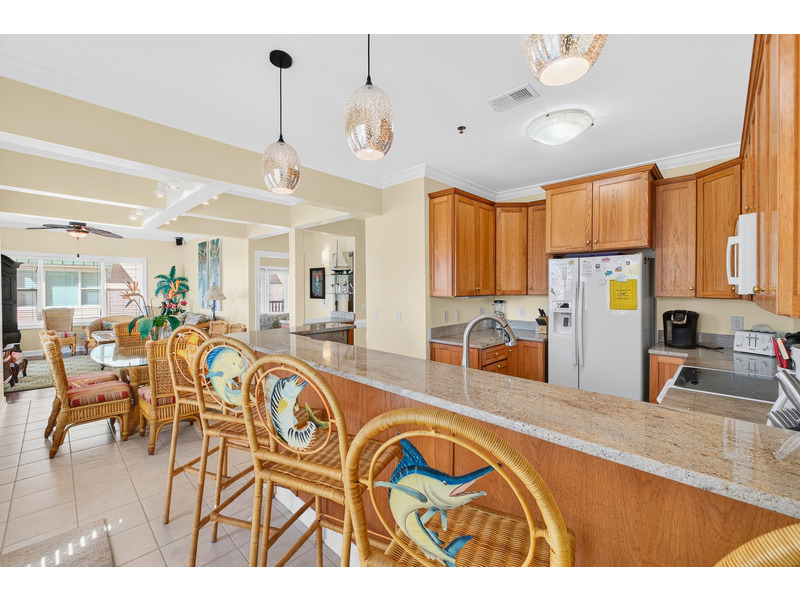 Amenities include access to an oceanfront community pool at the Islander Resort, approximately two blocks from the condo, as well as use of the Islander Villas tennis courts nearby; elevator, outside shower, central heat and air, washer and dryer, dishwasher, microwave oven, blender, Keurig coffeemaker, regular coffeemaker, 50 inch Smart TV, with Netflix, ceiling fans, wet bar, whirlpool tub in master bath, Brookstone Big Media bluetooth speaker and secured Wi-Fi. This property does not provide cable service, but there are five Smart TVs (living room and all bedrooms), which provide Streaming with guest's own account. This condo is approximately 150' from the Dawson Street beach access and 40 steps to Villas 5 access. The large, ocean facing deck offers partial ocean views.