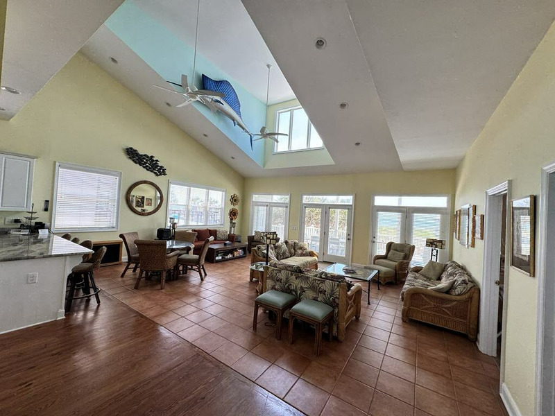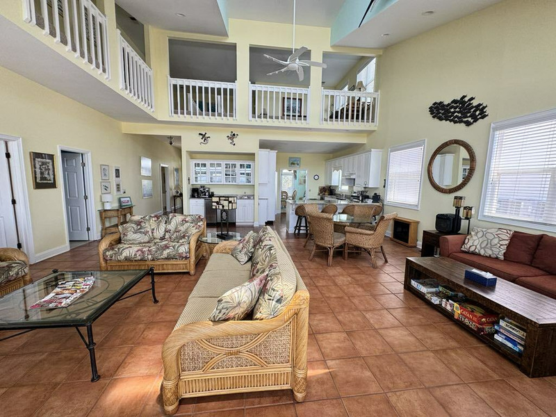 Catch some sun rays on the lounge chairs or enjoy your morning coffee on the deck right outside your bedroom with a splendid ocean view. There's an additional den upstairs with TV. The dining room table seats eight, there's a small table with four chairs, and there are four stools at the kitchen bar for additional seating.