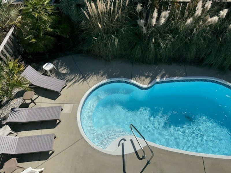 This third-row home offers 4 bedrooms and 3 bathrooms. Enjoy features such as central heat and air, microwave oven, dishwasher, washer/dryer, five flat screen TVs, with Streaming service which may be accessed with guest's login information, wireless internet, ceiling fans, covered porch, and an outdoor enclosed shower. Relax in the fenced backyard with 12'X24' private pool. The home has newly remodeled bathrooms.