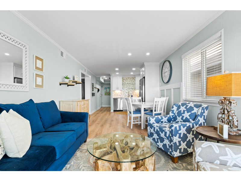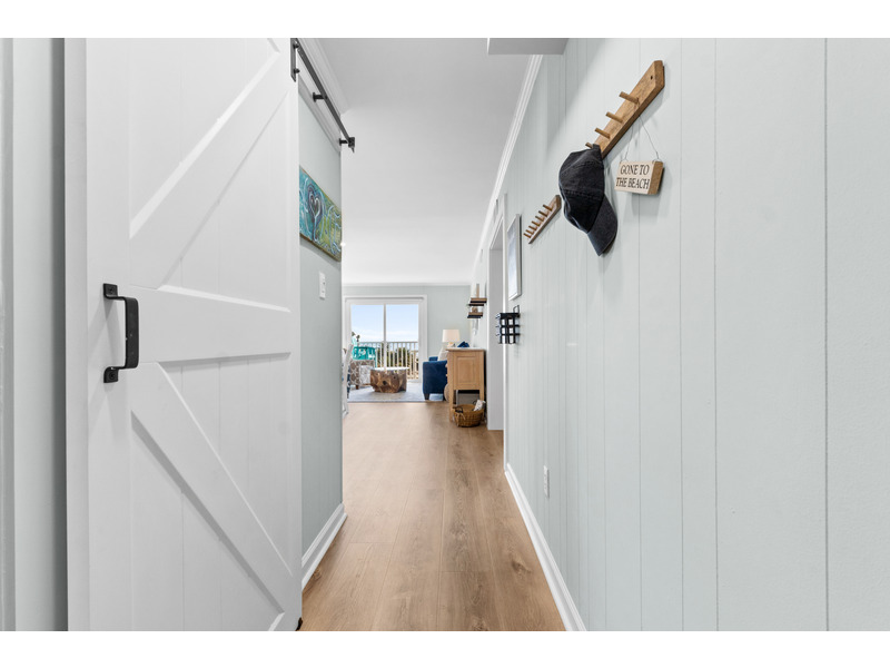 This inviting first-floor, oceanfront condo offers three bedrooms and two bathrooms, all conveniently located on one level. The primary bedroom features a king-size bed, while each of the two additional bedrooms are furnished with two single beds. The dining area includes a table that comfortably seats six.