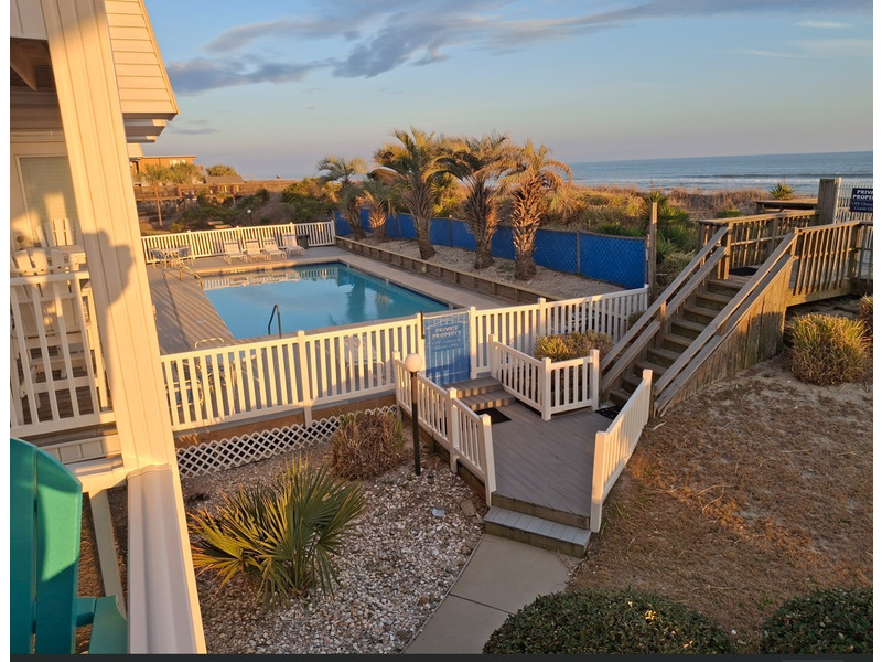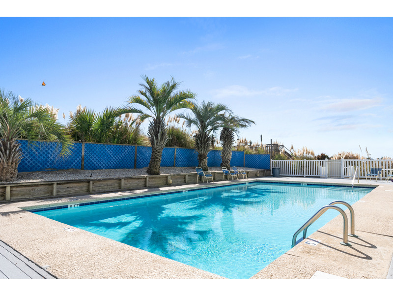 Guests can enjoy a variety of amenities, including a seasonal community pool, outdoor shower, central heating and air conditioning, washer and dryer, dishwasher, microwave, coffeemaker, Keurig, crockpot, blender, Smart TVs, and Wi-Fi. Step out onto the private balcony to take in stunning, views of the beach and ocean. Hibachi-style grills are available for guest use and are located near the pool area.