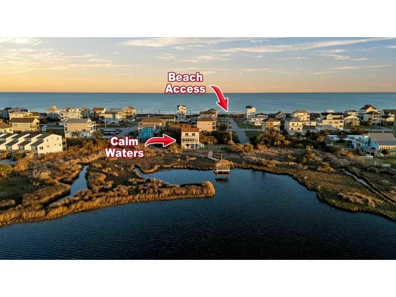 Welcome to Calm Waters at North Topsail Beach. This 3 Bedrooms, 2 1/2 Baths beauty offers style, convenience, and amenities galore. Enjoy your own private dock directly on Stump Sound and only steps away to the beach access with the sparkling Atlantic Ocean.
