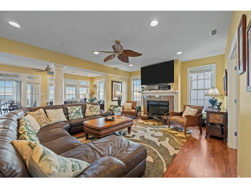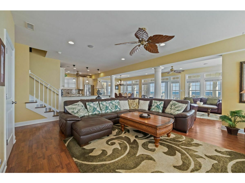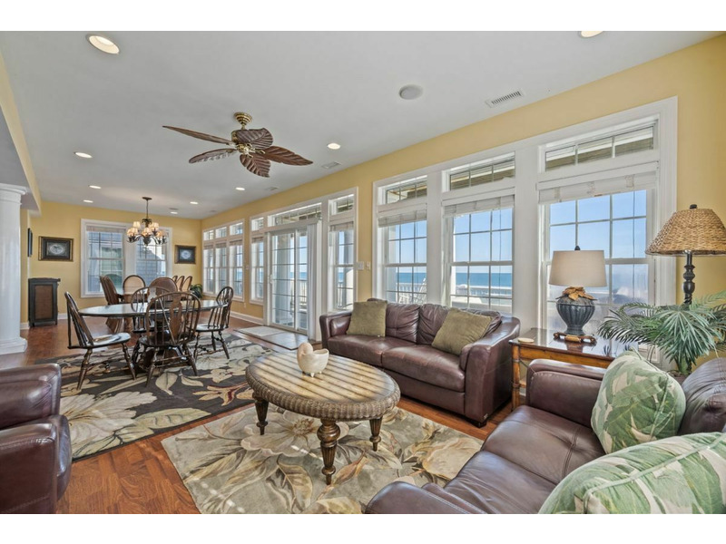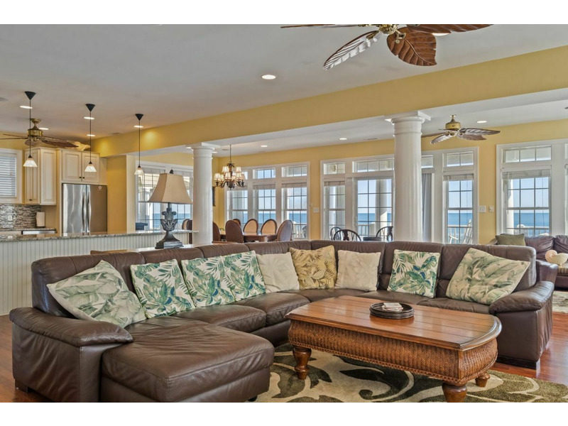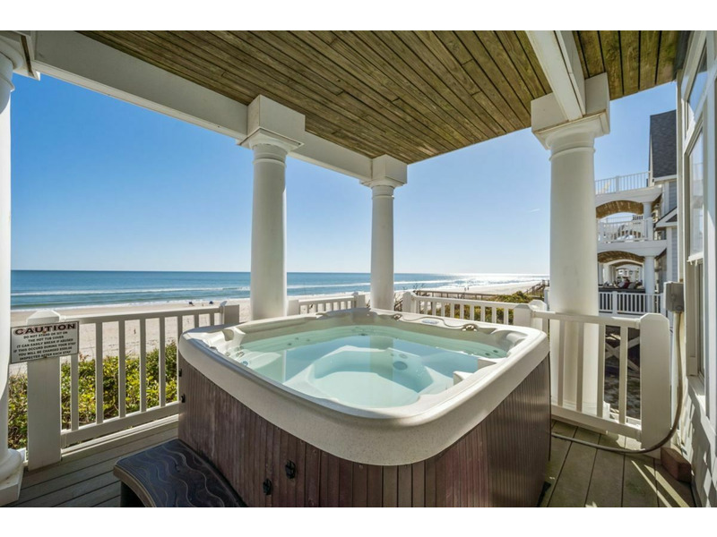 First Floor: As you ascend the stairwell and enter this first floor area you will immediately become captivated by the magnificent view of the glistening Atlantic Ocean directly in front of you. This stunning view will quickly transform your body and soul into the vacation mode. You have arrived. This large oceanfront deck spans the complete width of the home and is equipped with Trex composite decking for no splintering. On this main living level deck you will find plenty of seating for enjoying those morning cups of coffee while watching the Porpoises as they troll down the shoreline in search of their morning meal. There is also a picnic table for those of you that enjoy having your meals outdoors. For your added enjoyment and relaxation, this oceanside deck is also equipped with a hot tub.