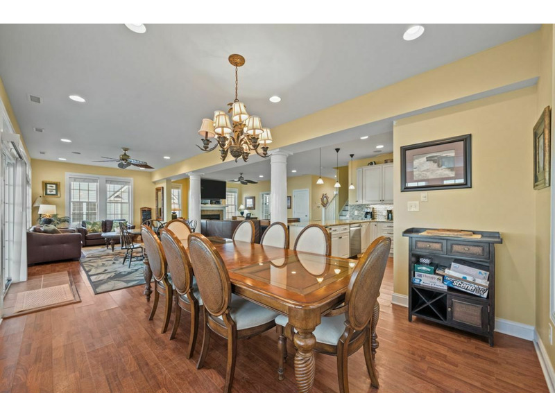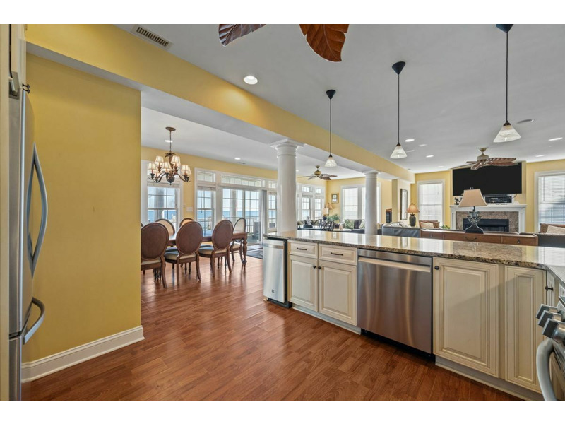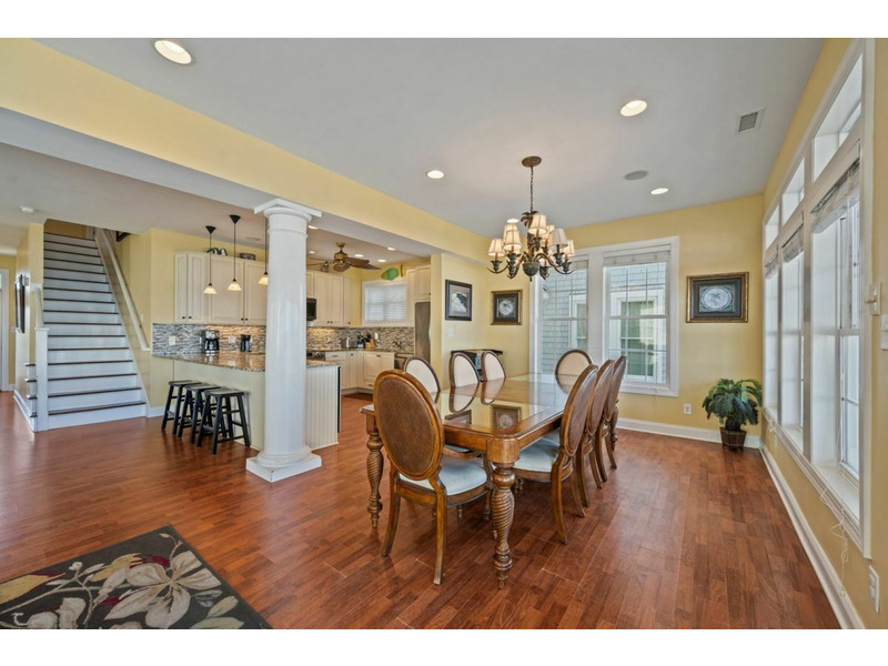The dining area has ample seating for 15, with 8 at the main dining table, 4 at the smaller dining table and 3 at the granite island bar. There is also extra eating space at the picnic table just off the dining area out on the oceanfront deck.