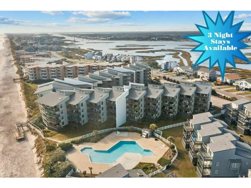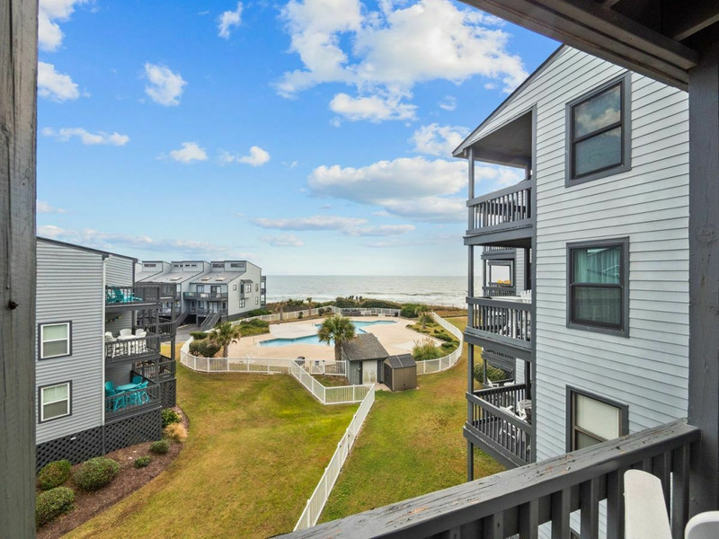 This is a lovely 2-bedroom 2 bath condo located on the 3rd floor of the much-desired Shipwatch Villas oceanfront complex. The lushly landscaped grounds of this well-established complex provide a tropical backdrop for your Topsail Island vacation. This 3rd floor unit offers access to the large community pool, outdoor grilling area, beach access and outdoor showers, all for your enjoyment.